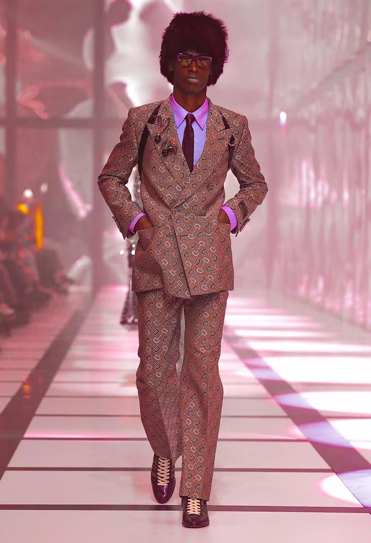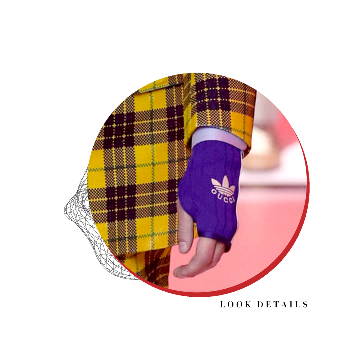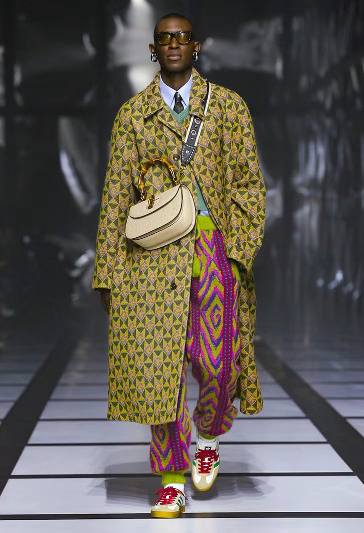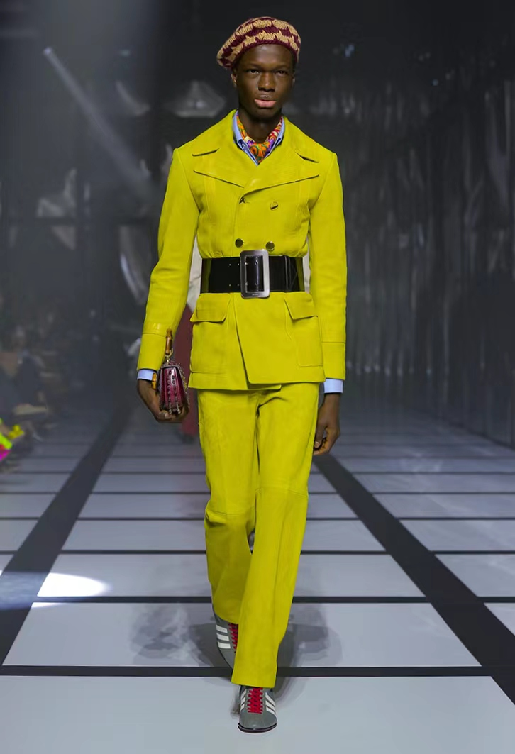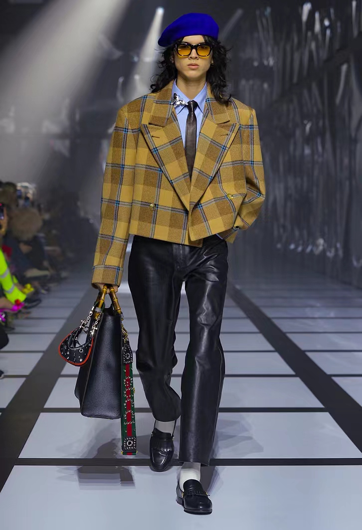 鞋履方面,将运动品牌的经典三道杠元素与Gucci结合起来,Alessandro Michele在这一季探索潮流与时装文化边界的创造力依然在线。