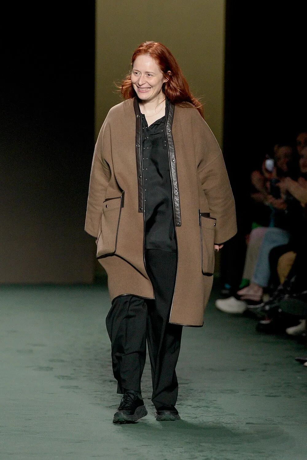 秋冬必备的西装、夹克及大衣通过肩部和腰部的特别剪裁,把优雅和潇洒合二为一。爱马仕表达的力量是从内心出发的,它无关外在声音,只关乎自我态度和敢于打破桎梏的精神,展示了一个自信、优雅、时髦的内心世界。颠覆旧知往往意味着打破常规,大量工整的线条被放入多元化的设计中,不同材质间的变换结合让时装更有造型感,2022秋冬系列从细节上就展现了老牌时装屋不断拓宽边界的精神。爱马仕一直关注女性自身线条的美,并将其与时装完美糅合。成衣上褶皱的设计在简约立体的剪裁中流动了起来,传递法式优雅基因的同时,延续着品牌一贯的摩登气质。至于爱马仕最受关注的包袋部分,这一季的创作依然从实用性出发——包身不会过大,加长的包带能够将其很轻松地挎在身上。让女性不被包袋困住双手,从而行动可以更加自由洒脱。鞋履方面,这一季依旧多为平底,配合成衣马术骑士的剪裁,将靴子与长袜搭配在一起。靴子的材质多偏哑光皮质,加上方头和鹅卵石鞋跟的设计,芭蕾舞者般的柔软温暖直击内心。利落有型的鞋型线条,勾勒出爱马仕独有的考究且慵懒。腰带贯穿这一季秀场的多套造型,金属与皮革的碰撞令风格更加别致有型。其中作为装饰的“金字塔”形铆钉,灵感源自爱马仕的经典设计狗项圈,这种微妙的演变恰如其分。秀场最后,Nadège Vanhee-Cybulski出场挥手,作为二十年来爱马仕自拥有成衣系列起的首位女性创意总监,她始终保持着平和、优雅,正如爱马仕在新时代的时装语言。给明天创造惊喜,和爱马仕一起迈着轻盈的步伐沿着一往无前的道路前进。