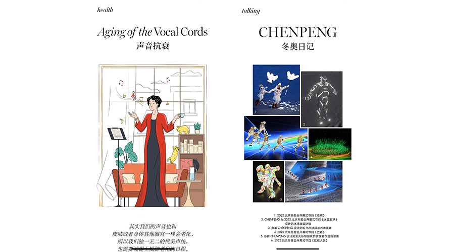 你知道吗,声音也需要保养,我们邀来著名女高音歌唱家王秋棃,听她说说如何维护声带健康。刚过而立之年的设计师陈鹏,通过日记讲述被emo选中的跌宕起伏,开幕式上出自他手的服装,背后可有不少故事。
