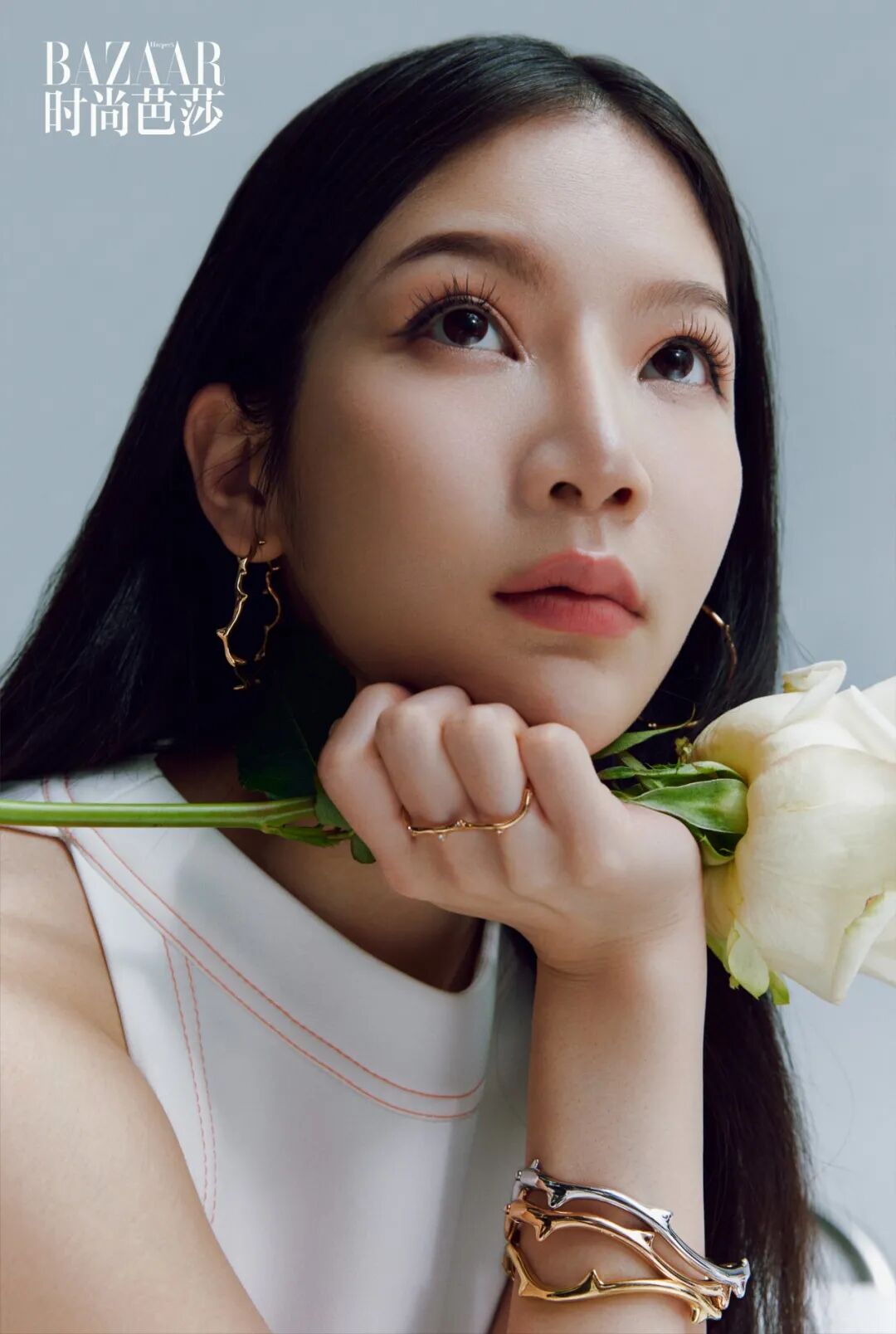 如果说“玫瑰”因为花瓣和枝桠的组合成了“美丽”的象征,那优雅舞动的身体就是“美丽本身”。中央芭蕾舞团首席主演邱芸庭,十年时间不断磨砺,创造新的艺术高度是她永不枯竭的源动力。双排扣露肩西装外套、吊带上衣均来自DIOR
