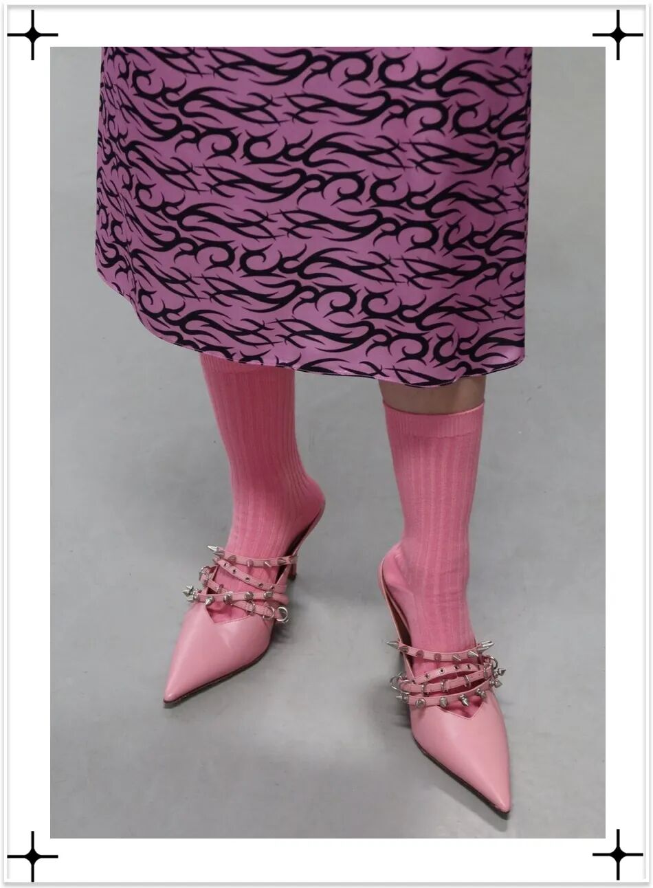还有同色系印花丝袜,只要你敢想敢搭配,彩色的穿法可真的太多了!出彩也不会很难搭配,日常的穿搭绝对可以轻松hold住!再加一个小蝴蝶结,纯欲风轻松拿捏,软软嫩嫩的公主鞋实在太想拥有了!当聚光灯照在身上的一瞬间,像踩在星河上一样闪耀浪漫!全场瞩目的焦点非你不可~这样的梦幻美鞋快了解一下!将头发梳成慵懒的大波浪,脚踩一双由钻石交织成蝴蝶结的尖头鞋,再搭配一个闪钻质地的Prada Hobo,整场聚会都在等你闪亮登场!