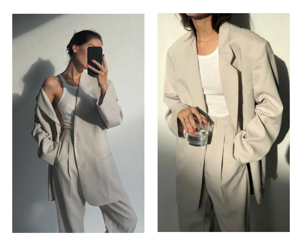 在各类剪裁与配色层出不穷的今天,廓形西装不再严肃,早已成为了时髦人士的衣橱常客,甚至一年四季都能看见它的身影。
