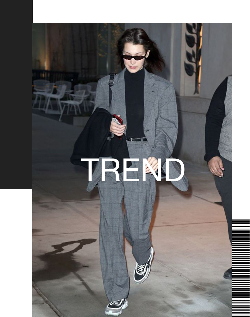 长款西装很适合尝试“下半身失踪”的穿搭技巧,并且灰色能很好地平衡性感和少年气,两者相碰酷飒感十足。