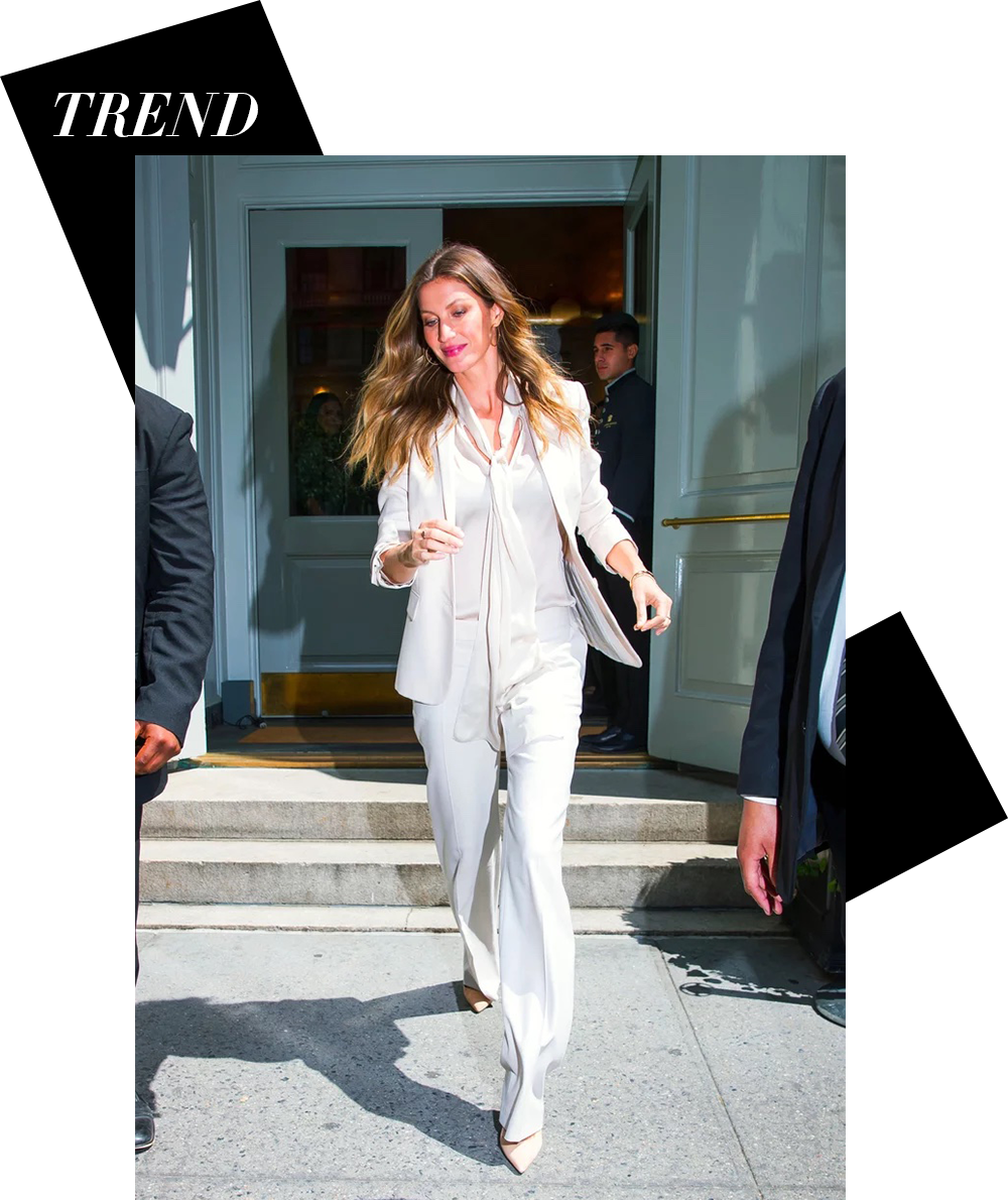 如果说黑色利落潇洒,那白色西装的气质就是极简摩登。它的纯粹无瑕让人身着的同时亦自带了天然的贵气感,是一种与生俱来的凛冽疏离——毕竟这首先就要有不怕被弄脏的魄力。