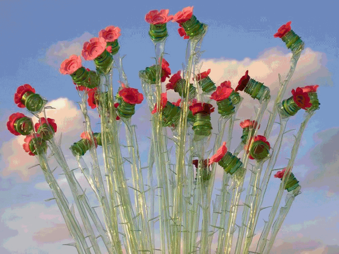捷克艺术家Veronika Richterová利用废弃的PET塑料瓶进行二次创作,已长达十多年。加热将塑料瓶重新塑形,使其呈现自然的植物形态,再还原出仙人掌特有的尖刺,最后成为疗愈感十足的仙人掌。