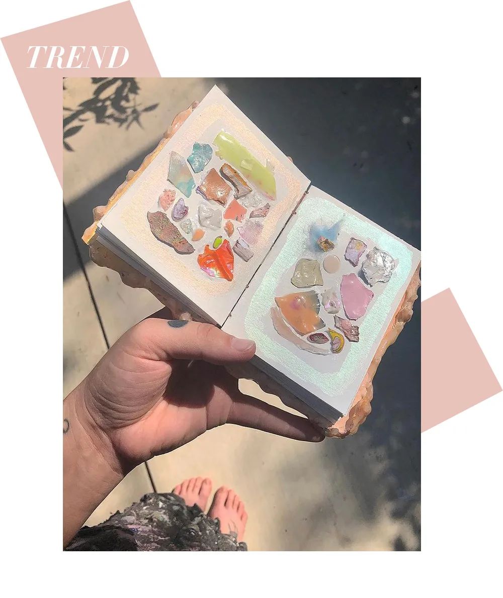 他的本意是将自然之美与以垃圾为代表的人类对自然的侵占并列,在这次全球疫情的影响下,又延伸出2021年的尼龙纱网系列。用五颜六色的尼⻰飘纱,捕捉风的形状。“不要的垃圾不要扔,剪剪贴贴又是新垃圾。”也许,捡垃圾女孩正是受到以上的启示,才会在日常中拿捏住了垃圾美学。垃圾手帐,顾名思义就是用垃圾制作的手帐,制作垃圾手帐俨然成为了很多女孩日常最爱的事情之一——