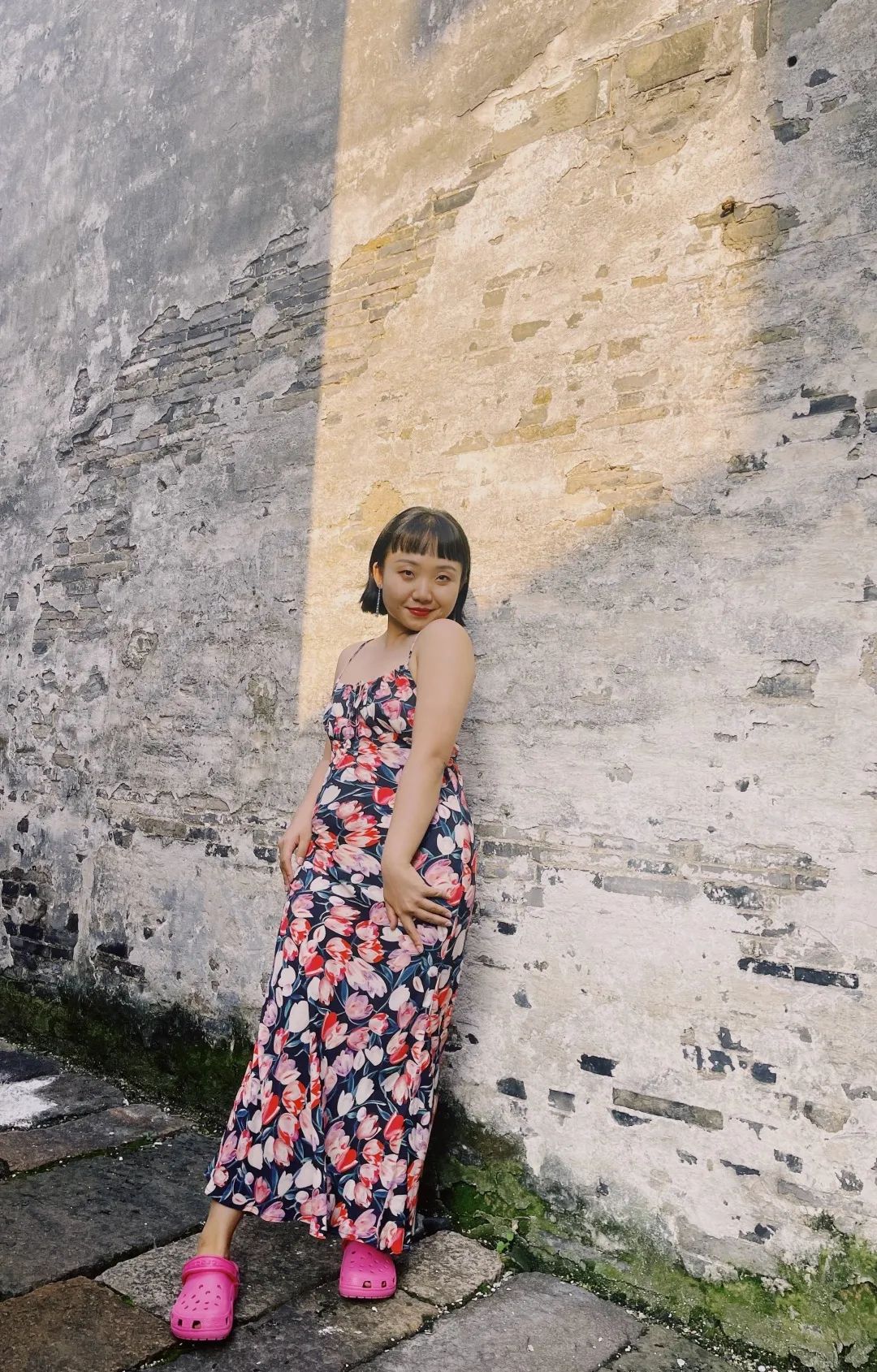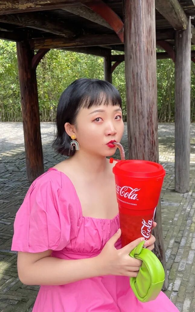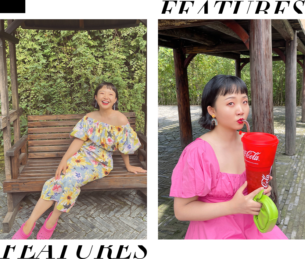 在凸显肩颈线条的同时还能很好地遮住手臂的肉肉,显得十分娇俏可爱,搭配着她卷翘的短发和明媚的笑容,身体力行地将身材焦虑中的尖锐抚平。
