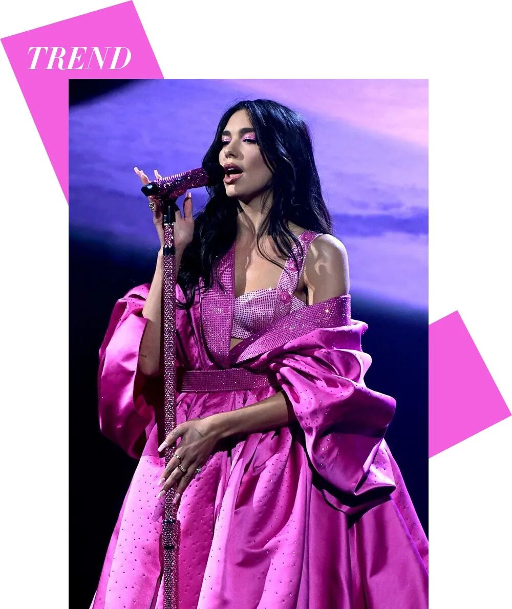 如今粉色摆脱了纯洁少女的畅想,让女性展示出真实模样。在年轻人眼中可以把驾驭粉色的时尚icon非Dua Lipa莫属,专辑《Future Nostalgia》中复古未来主义的粉色造型,让人不禁怀念起那个属于studio 54的年代。粉色代表了自由和大胆发声。