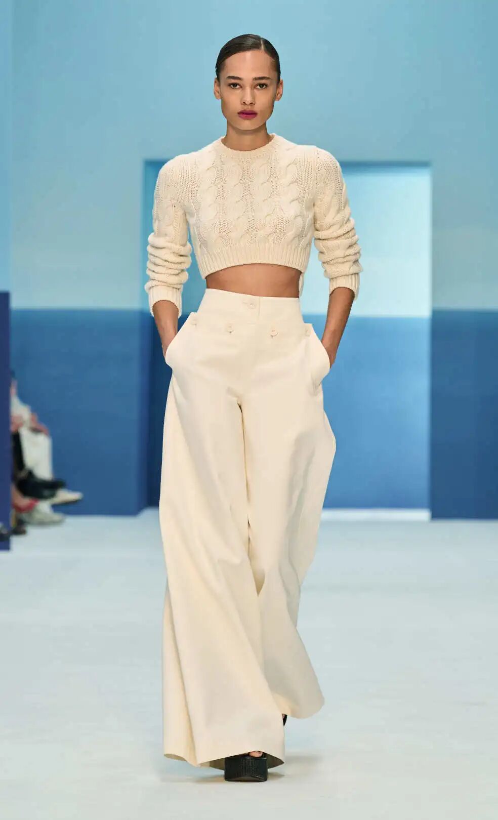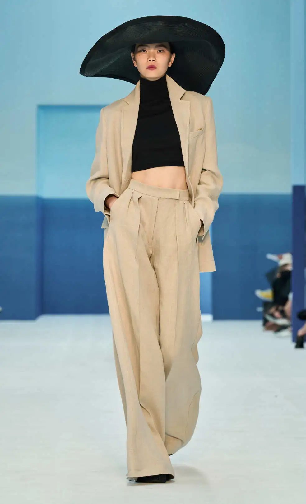 以蕾妮·珀尔的经典造型为灵感,露背背心、宽松帆布水手裤、松软宽边遮阳帽,以及臀部收紧、下方散开的休闲半身裙交替出现,仿佛可以看到蕾妮·珀尔生活在现代都市的摩登形象。