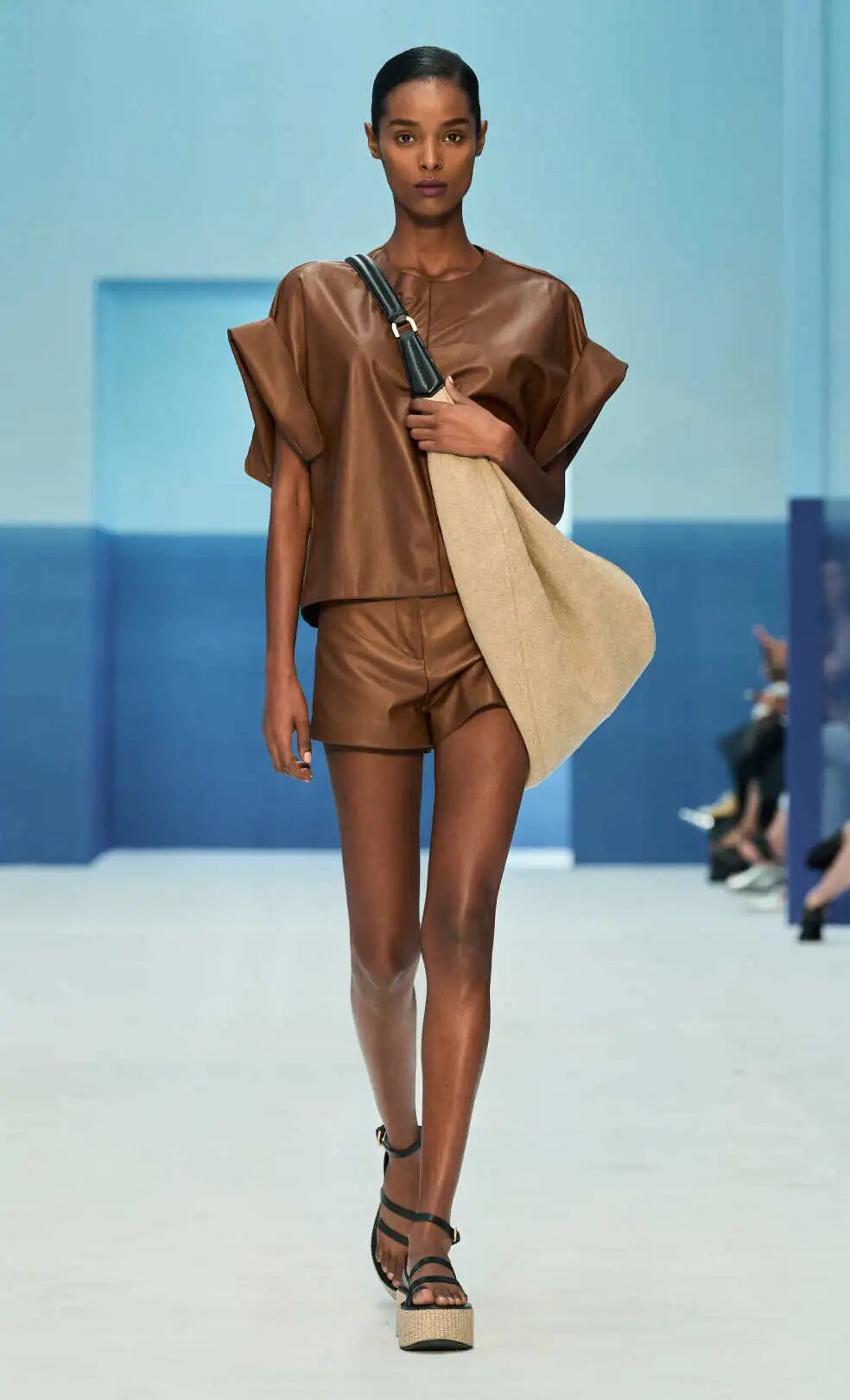 颇具意式风尚的罗马凉鞋也同样贯穿始终,编织厚底亲吻着细软沙滩,踝间交错的绑带搭扣让粗犷不失一丝优雅。每一步似乎都在唤醒着记忆中里维埃拉海岸的悠长假期。
