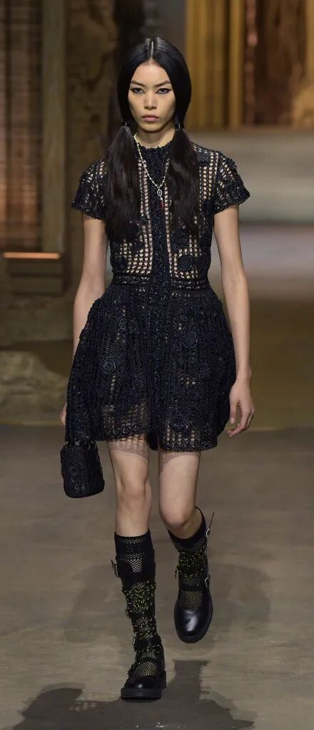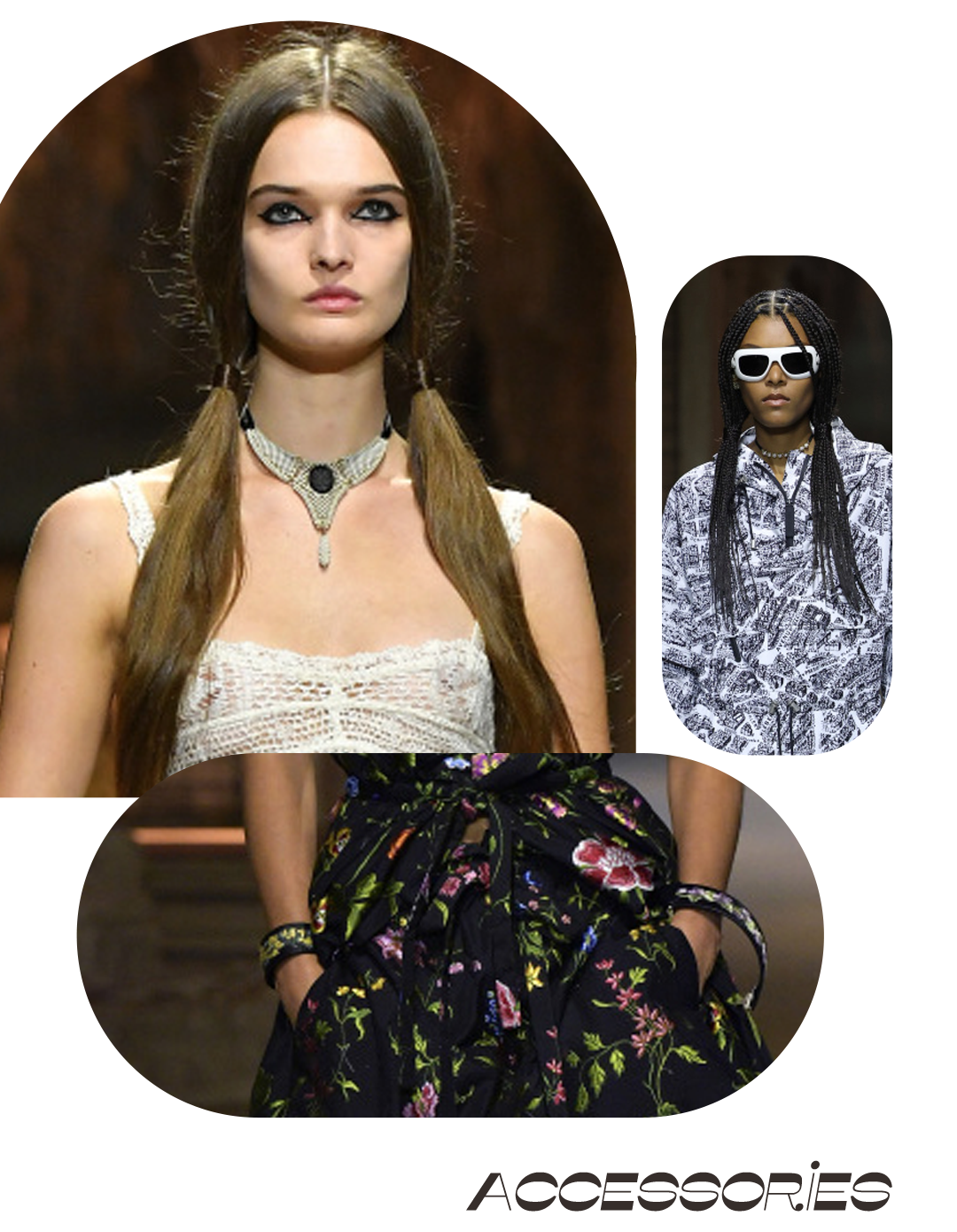 配饰部分,Maria Grazia Chiuri毫不掩饰对于Choker的偏爱。她从Medici时代的宫廷珠宝中汲取灵感,将珍珠、浮雕、编织加入新一季的珠宝创意,兼具复古与摇滚气息,令人眼前一亮。