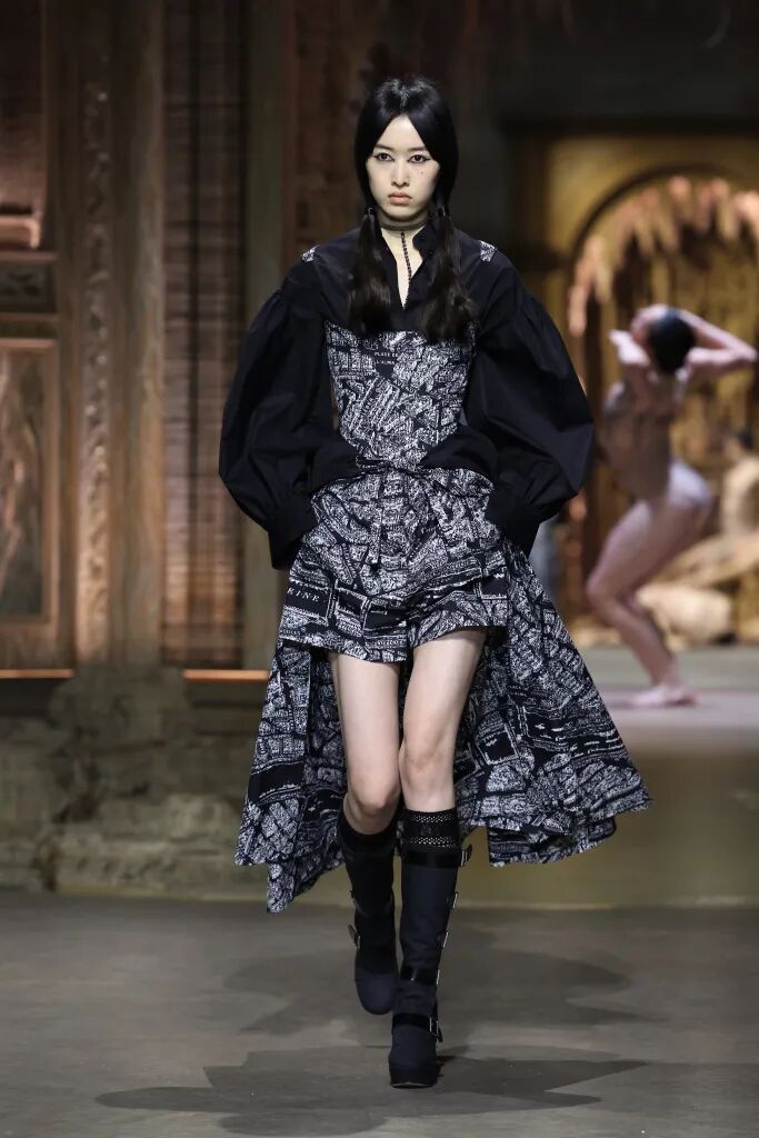 在现代舞者充满力与美的表演之间,模特们依次登场,一场跨越时尚与现实的浪漫大秀,缓缓展开。