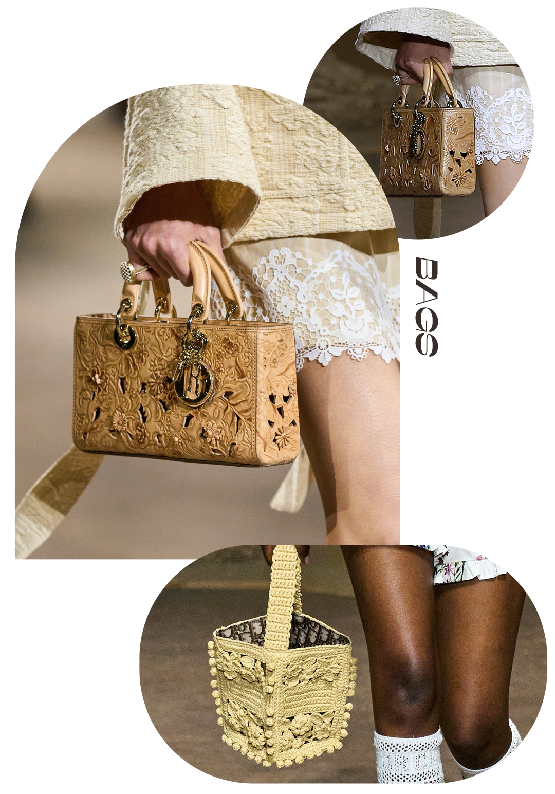 畅想着春日度假的美好愿景,Dior本季推出了多款草编手袋。以传统织法编织而成,装饰Christian Dior先生挚爱的玫瑰图案;或缀有流苏,随着模特行走而自由摇摆。