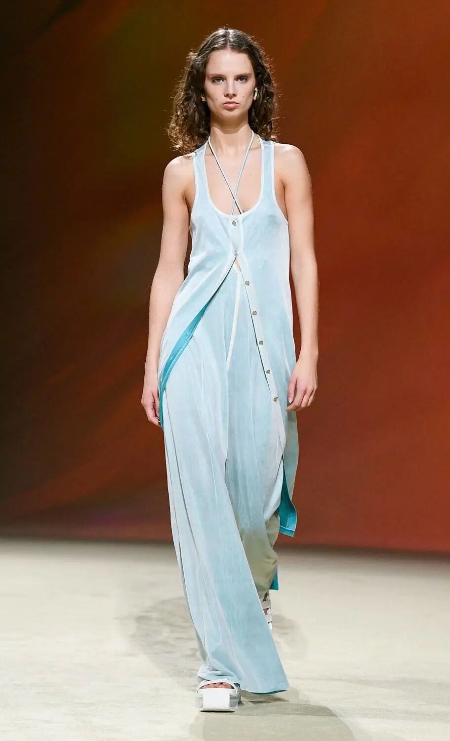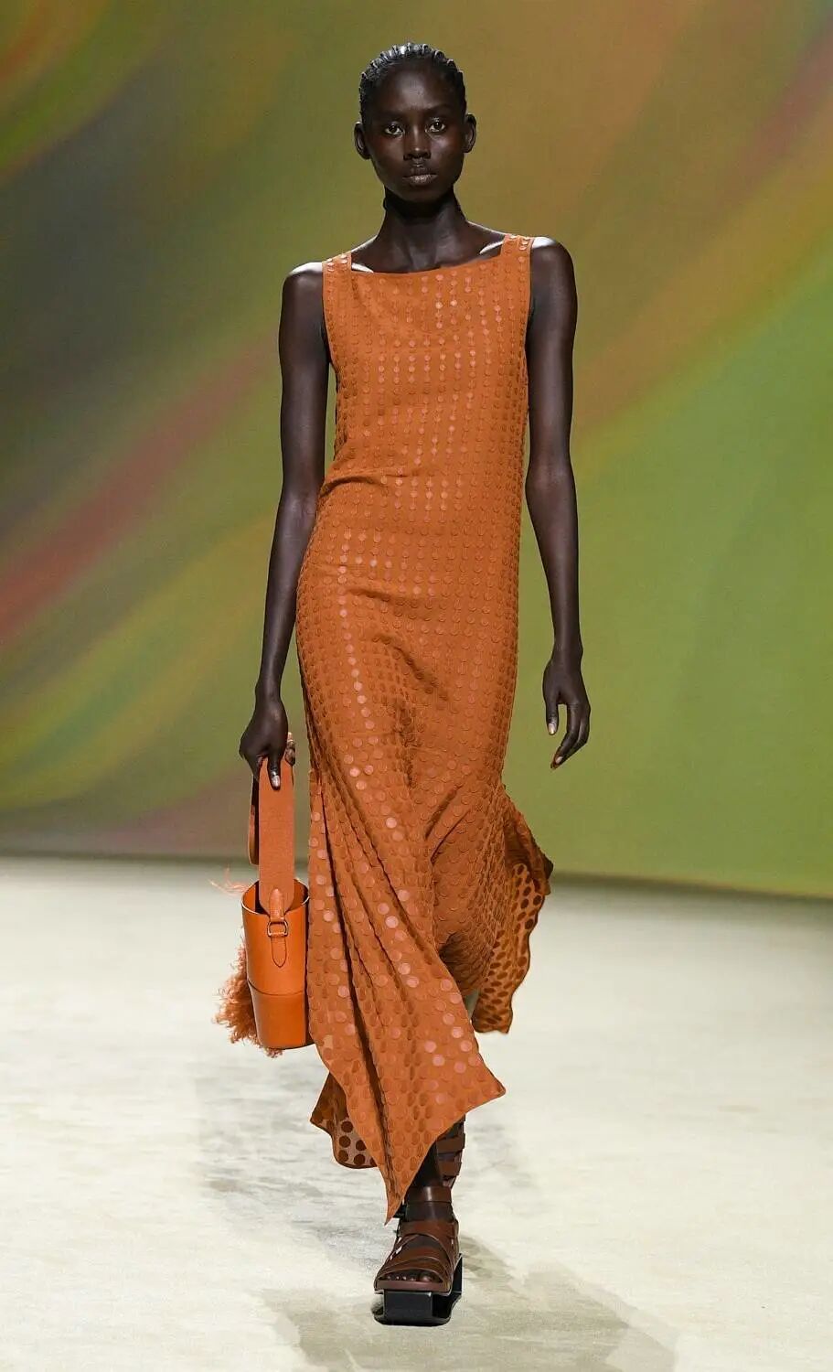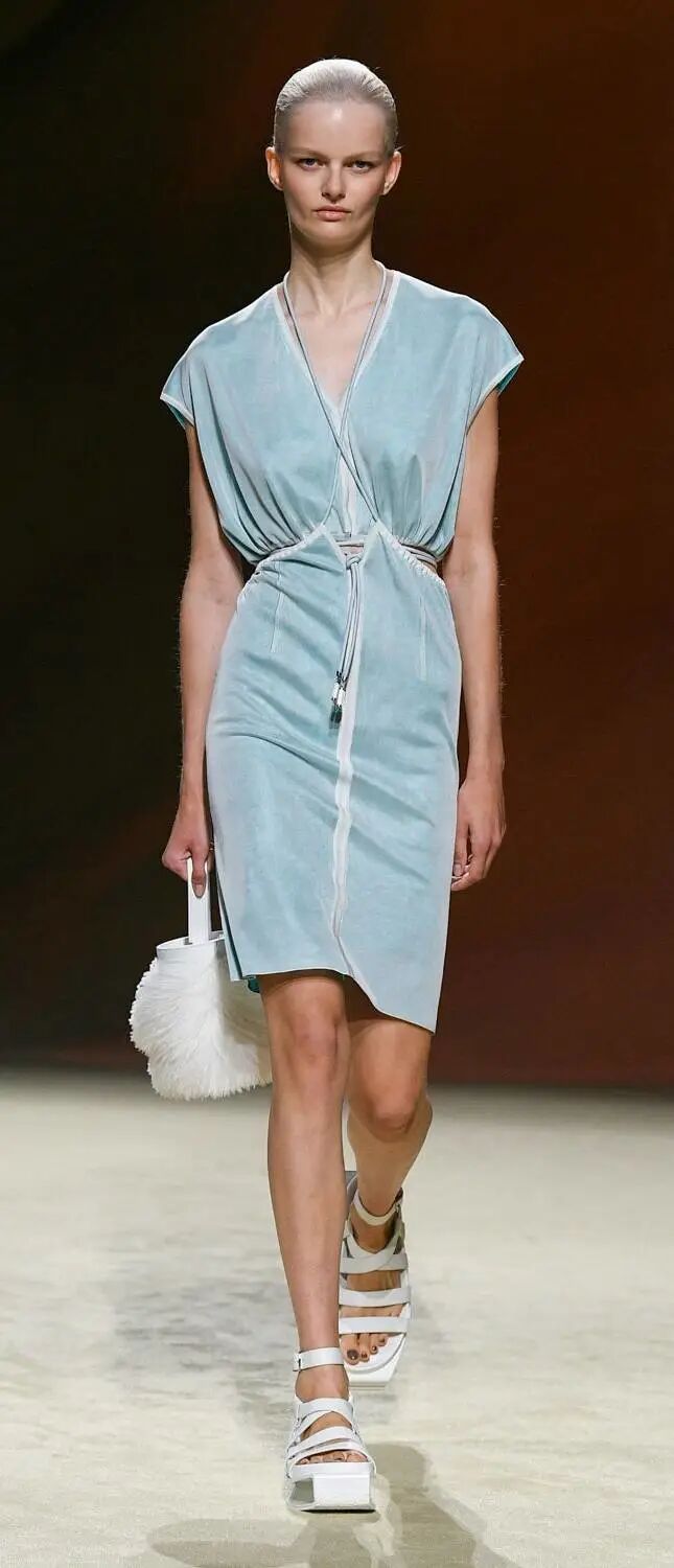 由Nadège Vanhee-Cybulski创作的Hermès 2023春夏季女装系列,继续逃离都市,延续着度假主题。