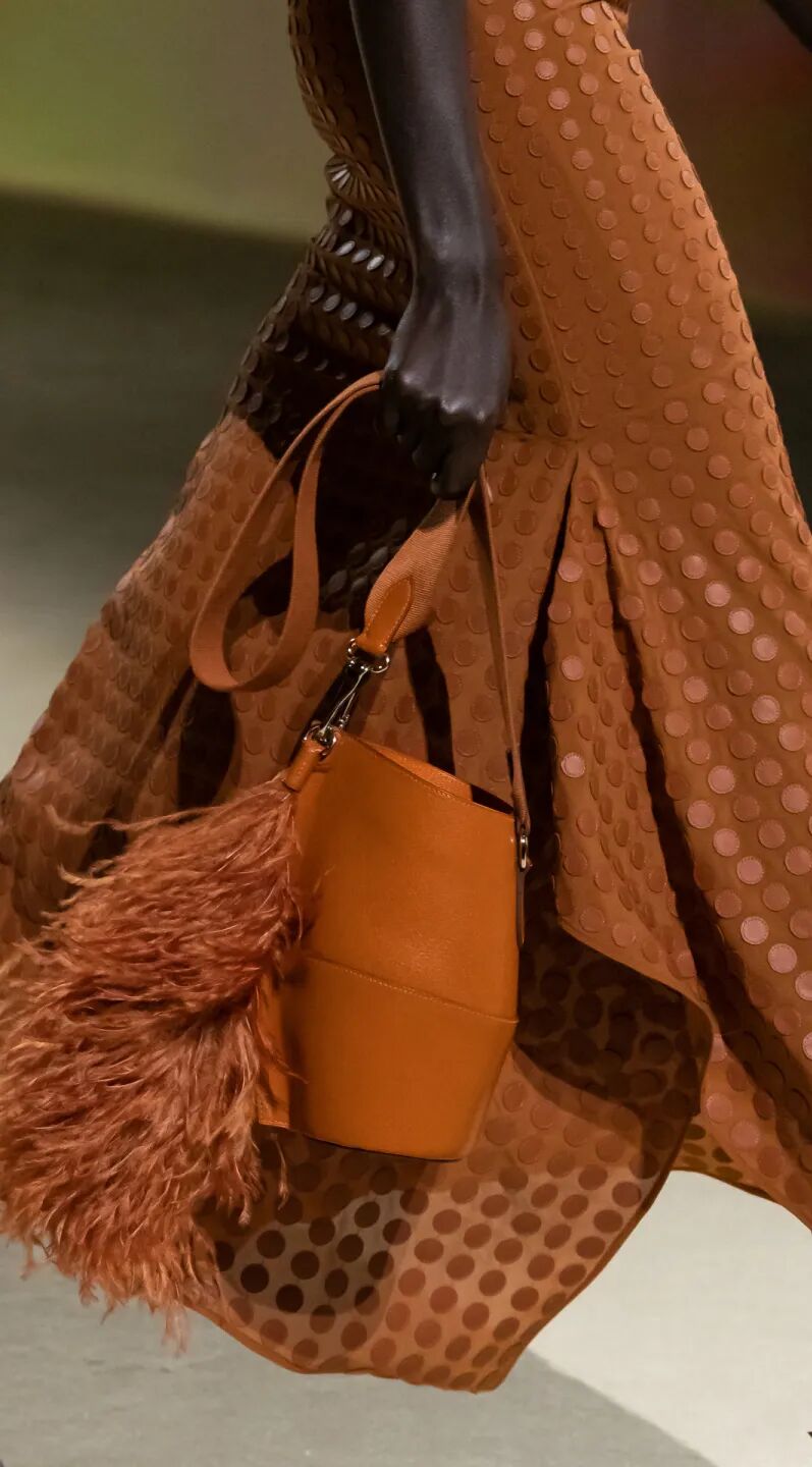 正如大秀现场那座光影变幻的大型沙漠装置一般,本季女装系列的色彩在保持舒适高级的标志性Hermès色系的同时,模拟了随景致而变化的沙漠风景:渐次呈现的赭黄色、乌木色、浅褐色与沙漠棕色,就像随着风与光不断流动的沙漠。