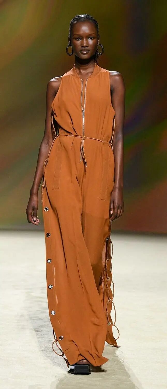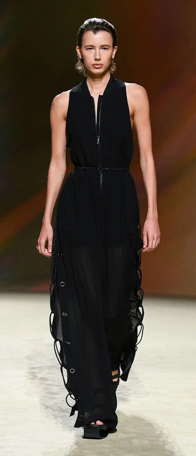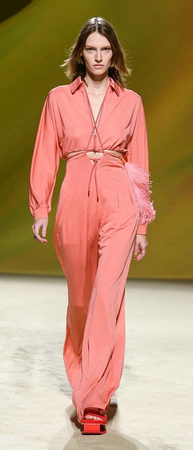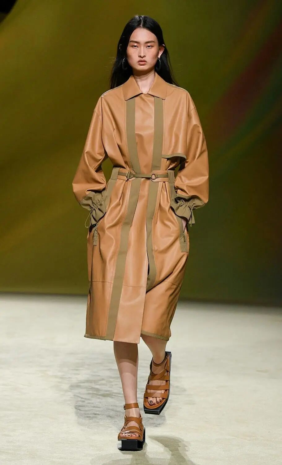 对皮革的成熟运用向来是Hermès的拿手本领。本季皮革亦被大量地运用在外套、长裤、连体衣、马甲等单品中。极具质感的面料与利落的剪裁,是实穿主义的高水平表达,再加上拼接、明线等设计为皮革注入了随性锐利的特别气质。