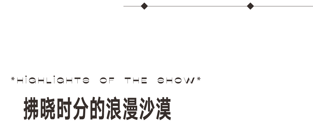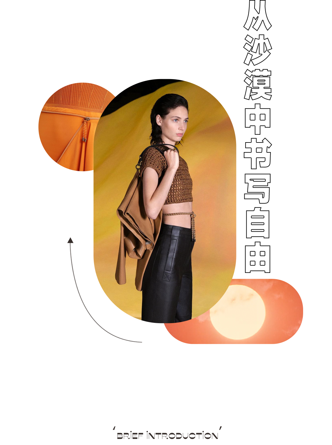 本季女装系列则将目光从男装系列的海洋转向了沙漠露营。她们于拂晓时起舞,于沙石间探索生灵,于旷野上吟唱自我的歌谣……这是一场只属于爱马仕女性的沙漠狂欢。她们大胆自信,从不圈禁于规则,在大地的无垠中露宿、起舞,书写着爱马仕女性世界的自由主义。