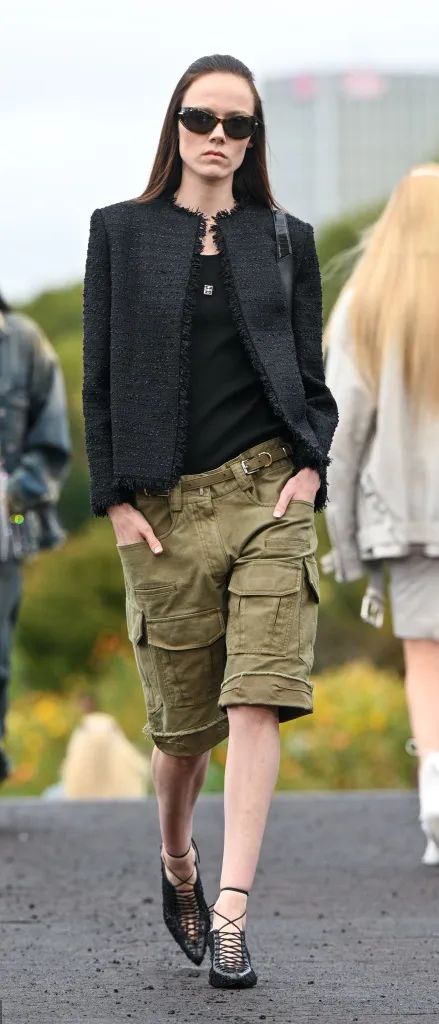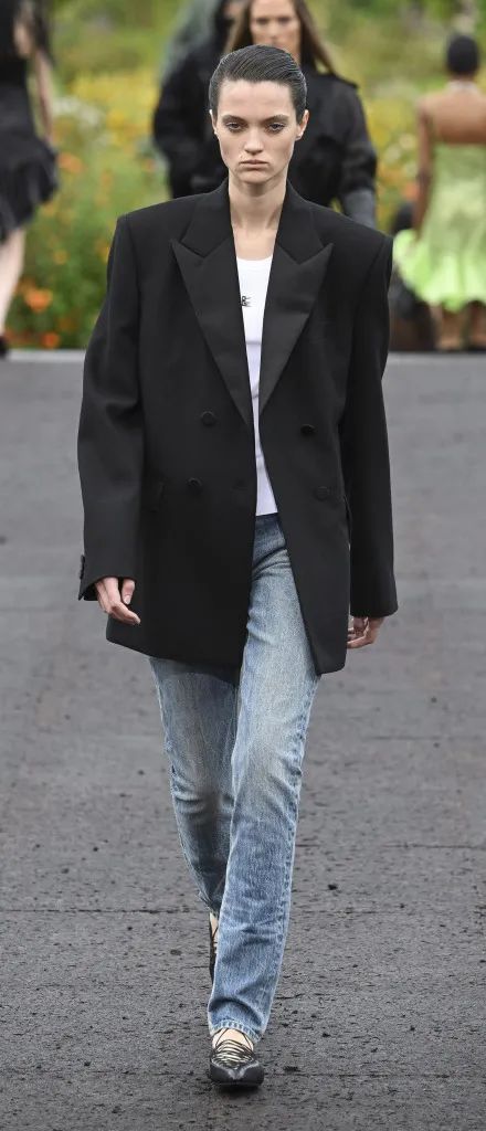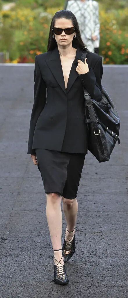 硬朗的肩部线条搭配收窄的腰身依然是本季重点廓形,更有别出心裁的剪裁创意,用拉链将外套改造成优雅的斗篷,经典的西装也加入束腰设计塑造全新廓形,牛仔、皮革材质打造的视错觉胸衣前卫且时髦。