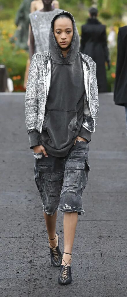 在本季,你可以看到来自不同文化地域的经典着装元素被拆解融合在一起:美式工装元素通过在尺寸上夸张放大和缩小修身的变化,展现出适于女性穿着的风衣、飞行员夹克、机车夹克、工装长裤和短裤等多种品类,均被赋予了独特的风格。