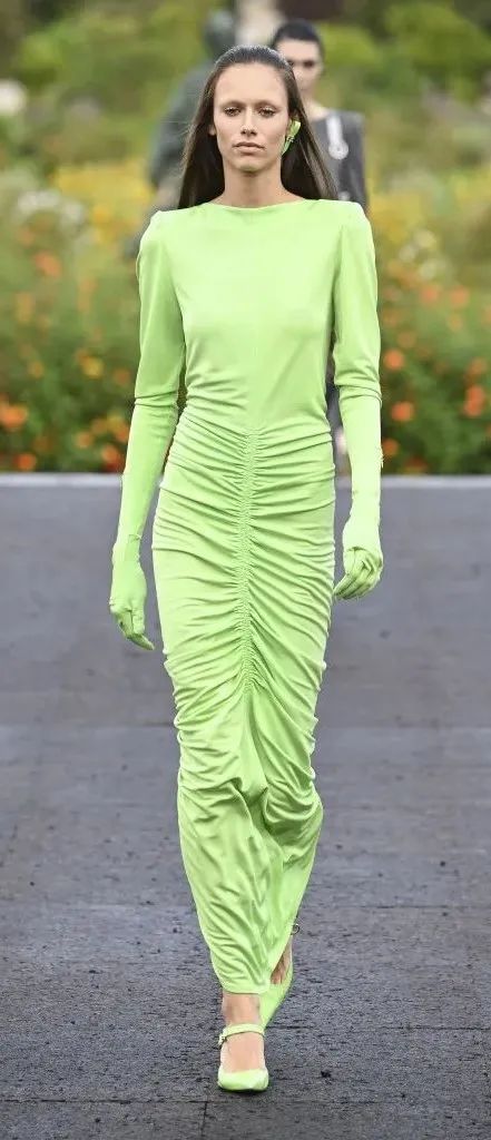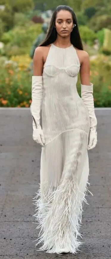 全新系列中,诸多品牌的标志性设计被重新演绎成当代都市衣橱中的日常款式,亦出现了薄纱、羽毛、针织这样大量的柔美元素,与皮革、牛仔等材质结合后,佐以利落裁剪,被广泛运用在工装与礼服裙中,一个个温柔兼具力量感的GIVENCHY女郎便立体了起来。
