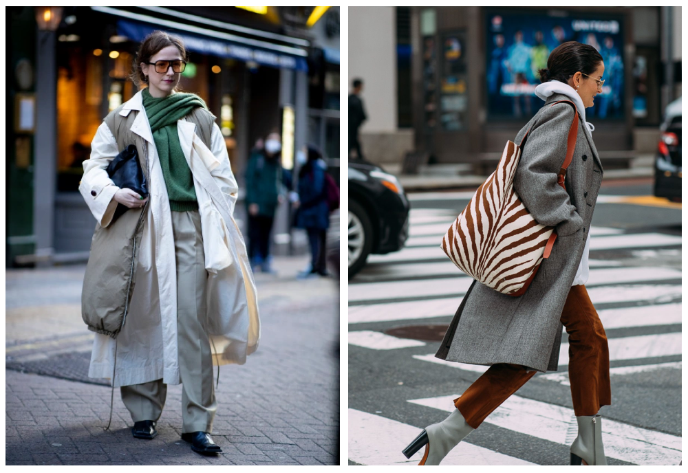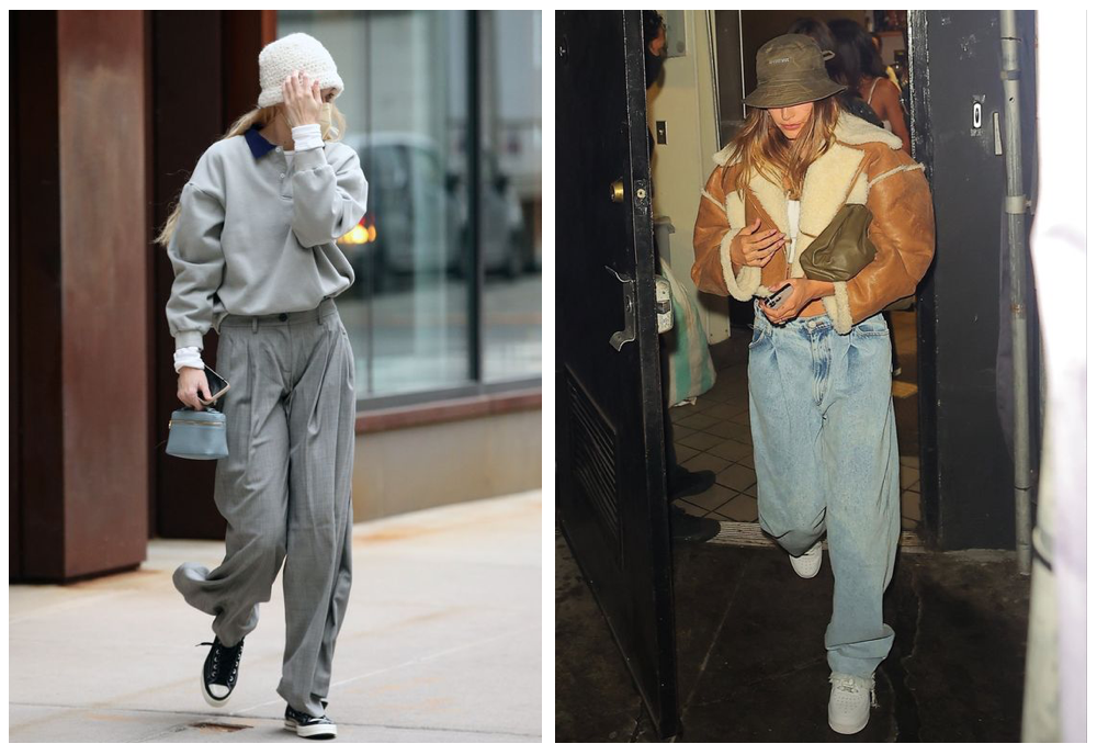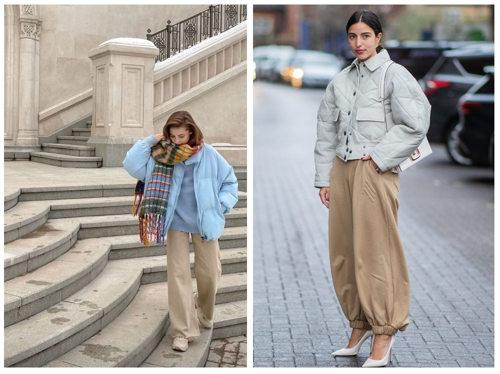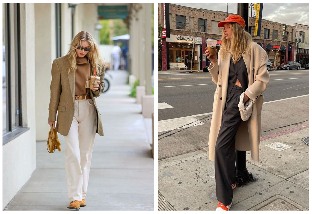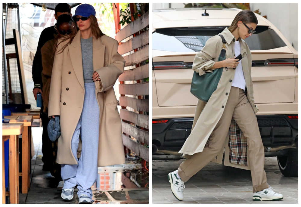 同样一秒入冬的还有Hailey Bieber ,一件宽肩米色大衣,轻轻松松地将灰色运动裤穿出时髦感,再拿上一个与蓝色帽子呼应的深灰蓝小包,看似散漫,却是暗自不经意地散发着松弛感的魅力。盐系女孩更喜欢“对着干”——总是把自己包裹进某件超宽阔的大衣里,让身体的比例全数模糊起来。