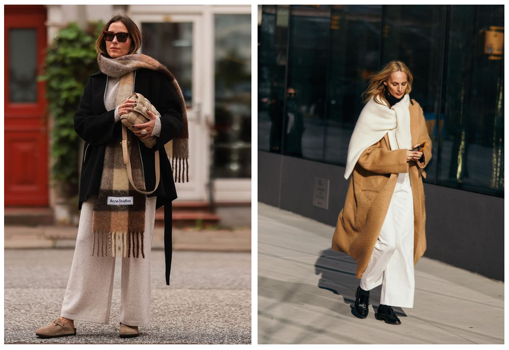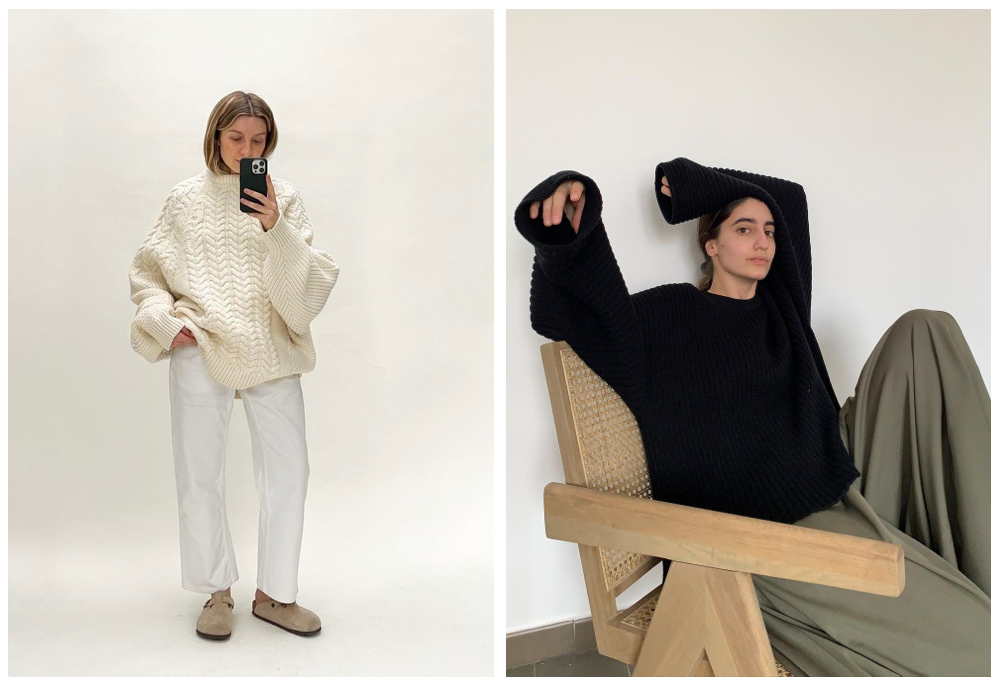 无论如何,不紧绷的宽松感是盐系的第一奥义。因此在冬天里,占面积最大的外套自然更要把握住这点,省去凌厉的剪裁,只需要宽些、再宽些,大些、再大些。
