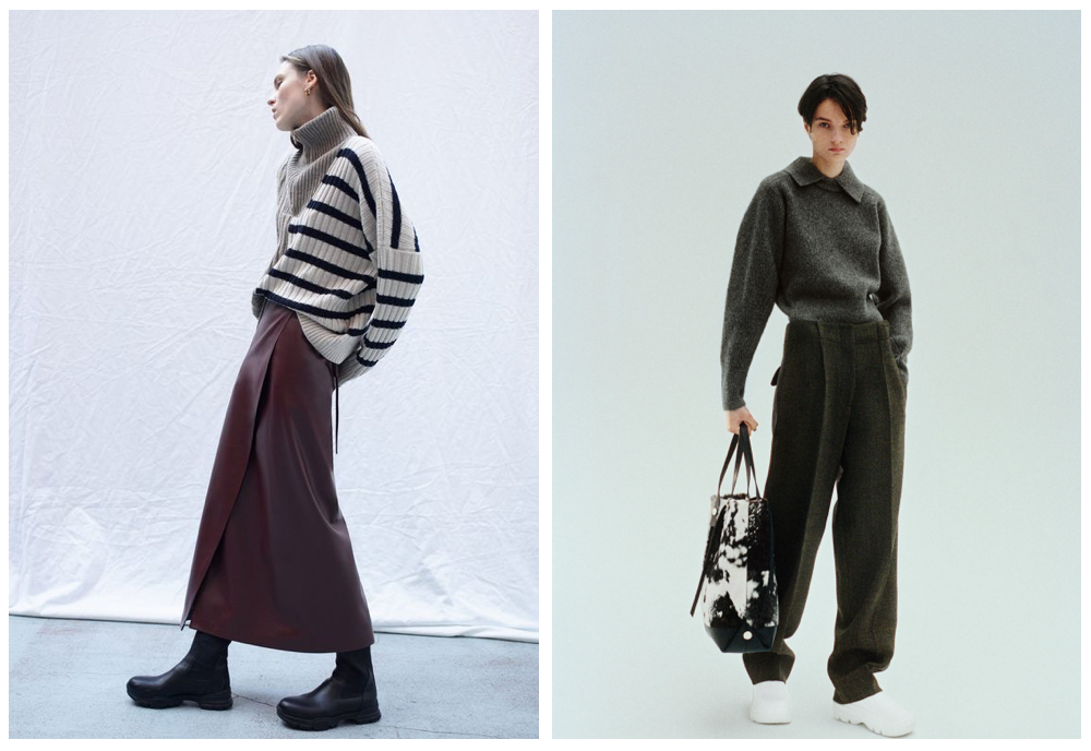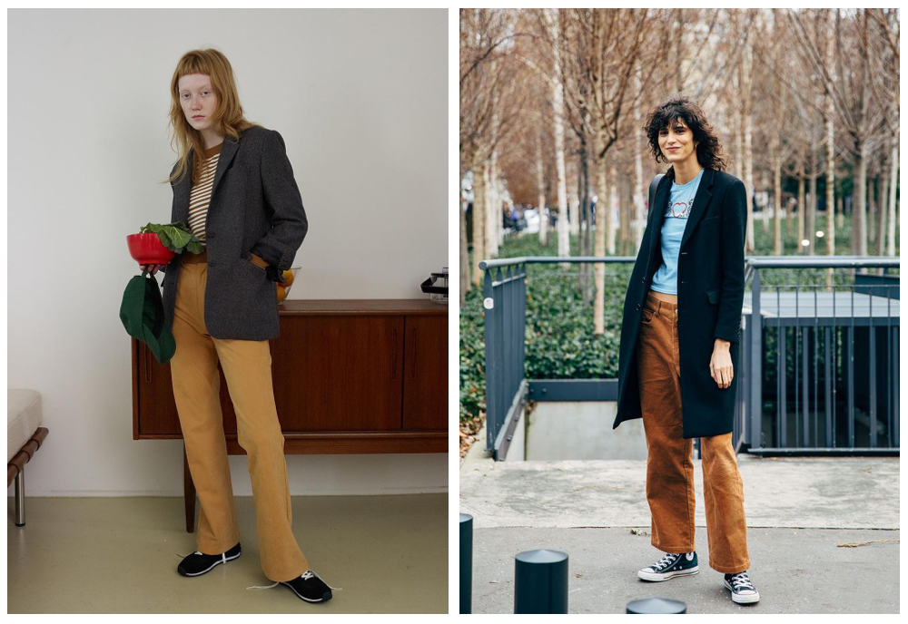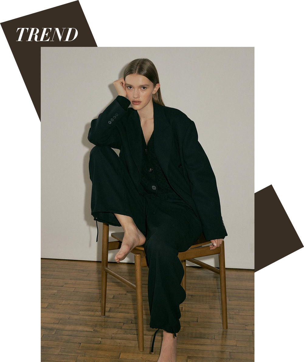 想要拿捏盐系的调性,把紧身的元素暂时放下,选择下装的宗旨依然得是裤管足够的宽大,要的就是那种能随时席地而坐连盘腿也没有压力的自在感。版式挺阔但不束缚身型的工装裤和阔腿牛仔裤都是不错的选择。特别是垂感线条流畅的工装裤,有着拉长腿部的错觉。而阔腿牛仔裤的宽松空间,更是“藏肉”又能偷偷穿秋裤的完美利器。而入冬之后,羊绒裤子自带的慵懒感,舒适又贴肤,柔软又有点厚度的质地,让look的质感整体提升不少,还营造出了暖暖的奶盐感氛围。裤装除了常规黑白灰以外,还可以多尝试灯芯绒和大地色系,复古情怀的同时也兼具温暖,立马赋予造型不一样的层次感。