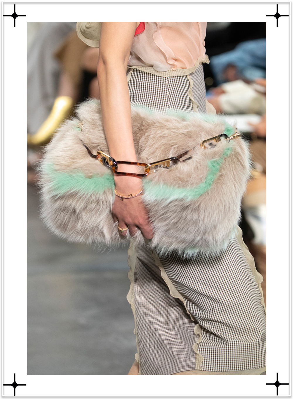 说到妙趣横生充满巧思的冬日氛围感单品,必然绕不过手袋,时尚大牌们会在冬季到来时,用剪羊毛、毛绒或者羊羔绒材质,来为经典手袋穿上毛茸茸的外衣。在2022秋冬秀场上,或许没有大面积的毛茸茸席卷而来,但极具氛围感的毛茸化作点睛之笔悄然落入经典单品之上。