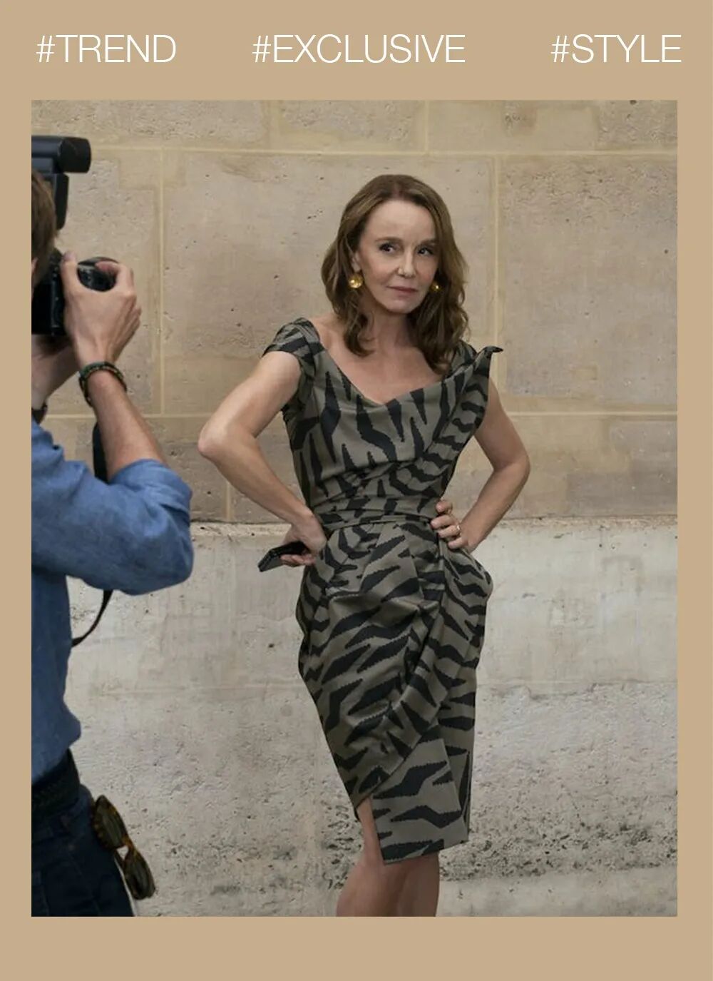 与美式正相反,法式是一个比较具象的词。一旦代入到法式的语境里,马上就能联想到一个发丝凌乱穿着合身基本款的慵懒尤物。不同于美式的“表达自我”观念,法式更注重“关注自我”,所以法国人非常重视服装和人体的契合度。Sylvie的裙子看上去都是量体裁剪,每一寸围绕身体的线条和露肤的程度都恰到好处。对法国人来说,时装不仅是简单的服装穿着,更像是表达生活态度的出口。作为PR主管,Sylvie一直拿捏着精致职业的时髦态度与法式“不完美美学”间的平衡点。服装配饰整套搭配一丝不苟,与此同时妆色减淡,发型没有刻意打理的痕迹。法国女孩把风格渗透在生活的每一处,时装博主们往往不会单一输出时装内容,还有与之匹配的生活细节展示。家居、看过的展览、插过的花、吃过的食物在她们的社交平台上频繁出现,法式风情就是被这些细节一步步填充才有了具体的画面。