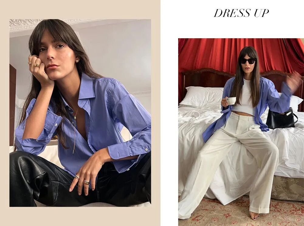 法国女孩们更加偏爱「可持续衣橱」,她们会对高品质的经典款进行投资。在博主Leia Sfez的社交平台上,可以看得到各种经典款的重复搭配。蓝色衬衫跟皮裤和银饰穿出酷姐态度,换上白色阔腿裤又是通勤模板。不少法国女孩,也或多或少地会对最新的潮流心动,但坚守风格的她们会选择购入配饰来感受短暂的新鲜感。而且,占比面积不大的配饰能够更好地融入自己本身的风格中。像丝巾这种百搭小巧的配饰在Leia身上是可以反复见面的单品。用配饰来给经典款加分,是法国女生都无比擅长的环节,Sylvie在剧中就用到过很多次腰带来增加基础款的可看性。