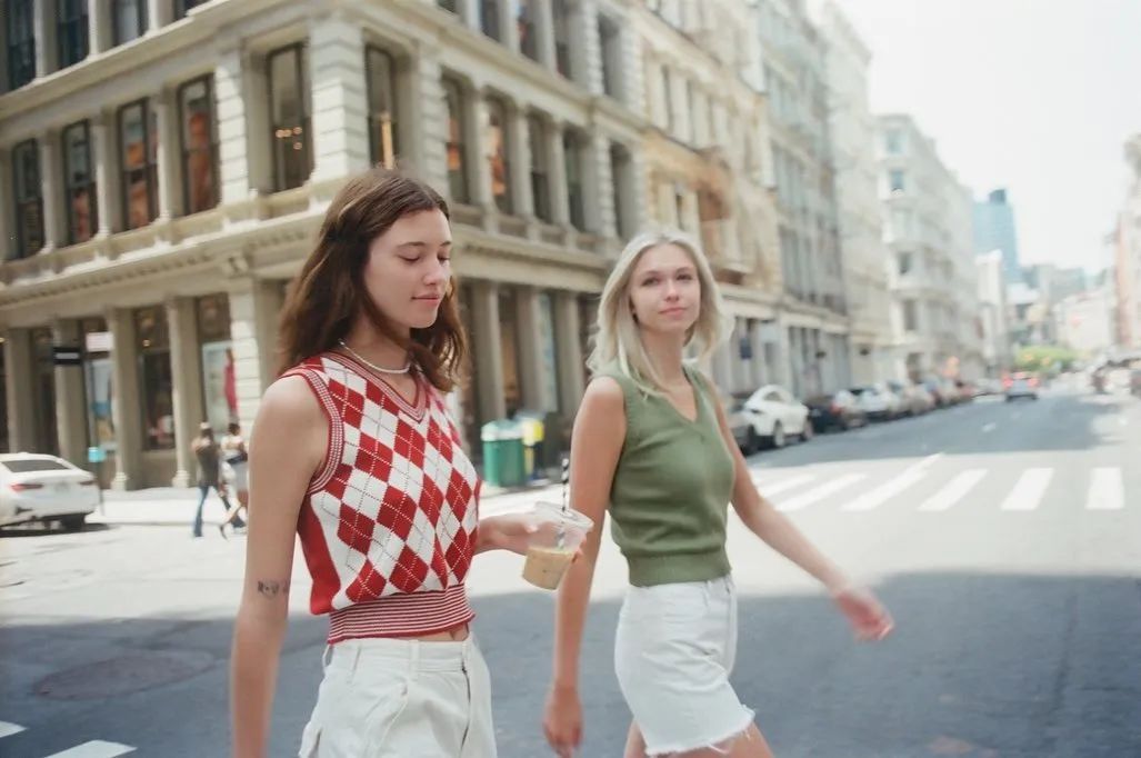 美国女孩对潮流的敏感触觉,从纽约SoHo购物区应有尽有的潮牌店中就能知晓一二。潮流更迭飞快,平价好搭配、对时尚圈每一个动作都迅速做出反应的快时尚单品,成为了大家的第一选择。之前爆红过一阵的意大利品牌Brandy Melville,就是在Kendall、Kaia等一众时髦Icon的频繁光顾下,一度成为了潮流风向标。活跃在社交媒体上的美国博主们同样热衷于快时尚品牌,在Tik Tok上坐拥800w粉丝的Charly Jordan,最近的节日装扮里选择了Revolve,来演绎甜心辣妹。美式风格更看中“一眼时髦”,是否上身最新的流行元素成为了判定是否时髦的标准。博主Brit Harvey的社交平台上,有不少来自Urban Outfitters、Superdry等品牌的单品,阳光、健康的同时保留了简洁都市气质。