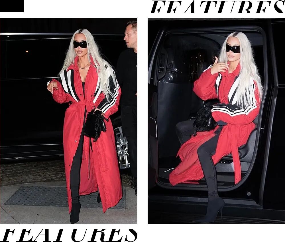 时尚博主经常用红色半裙搭配简约基础款毛衣、条纹衫,法式优雅感这不就有了~卡戴珊身穿 adidas x Balenciaga 联名系列出街,红色 oversize 长款廓形外套超显气场,与紧身裤、尖头鞋形成反差,时髦又有看点!!