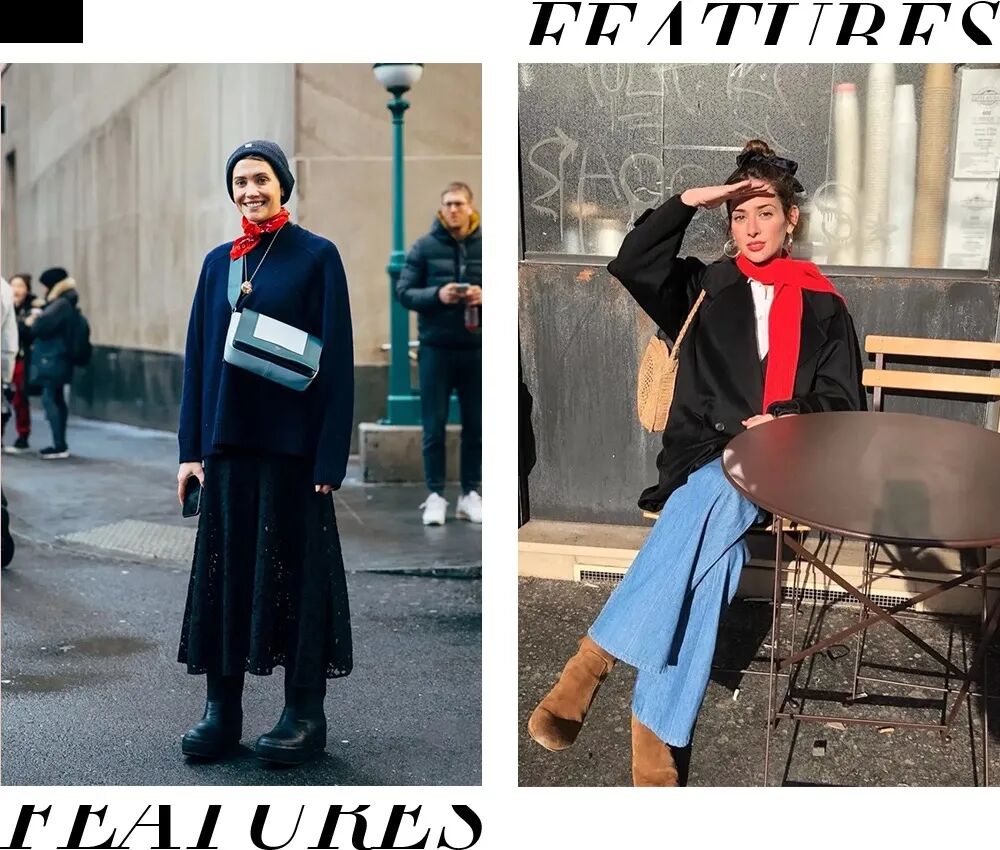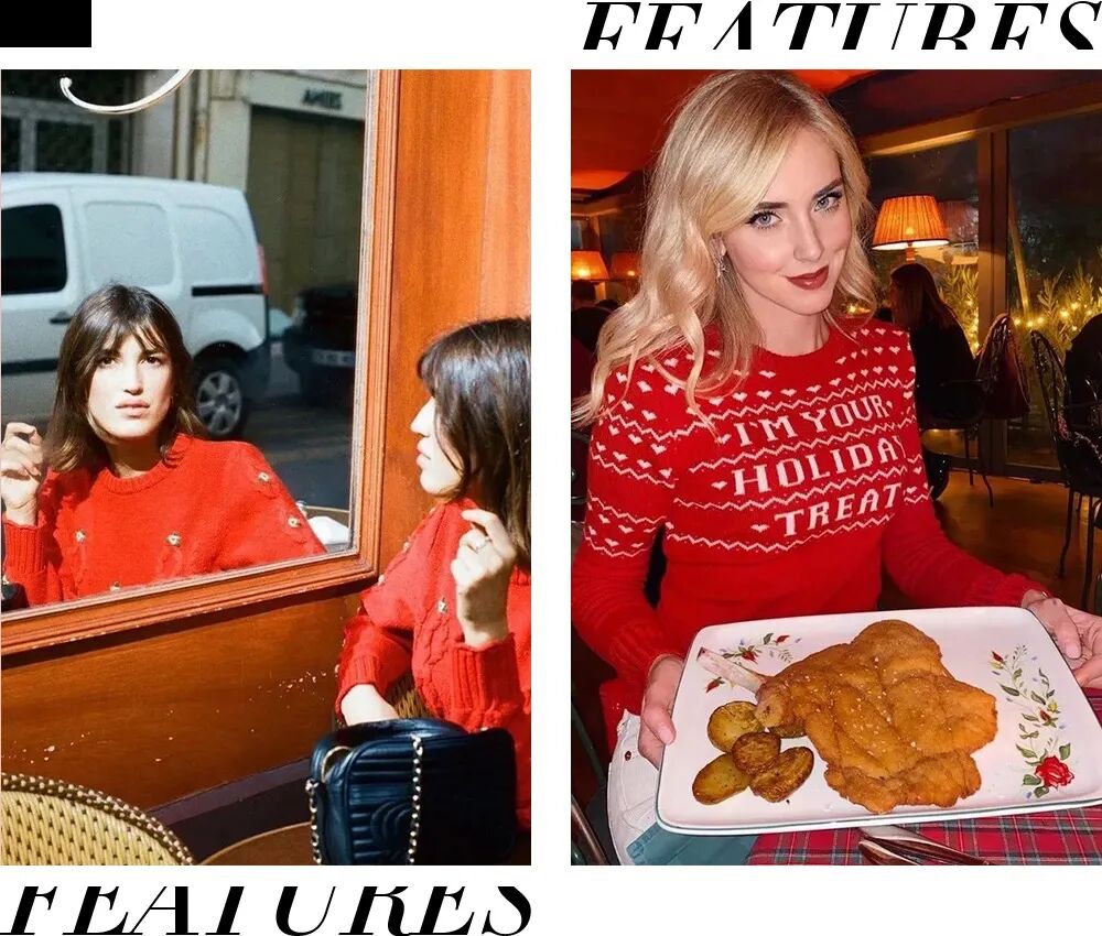 时尚博主 Jeanne Damas 以及宇博 Chiara Ferragni 都靠红色单品打造出喜气洋洋的氛围。