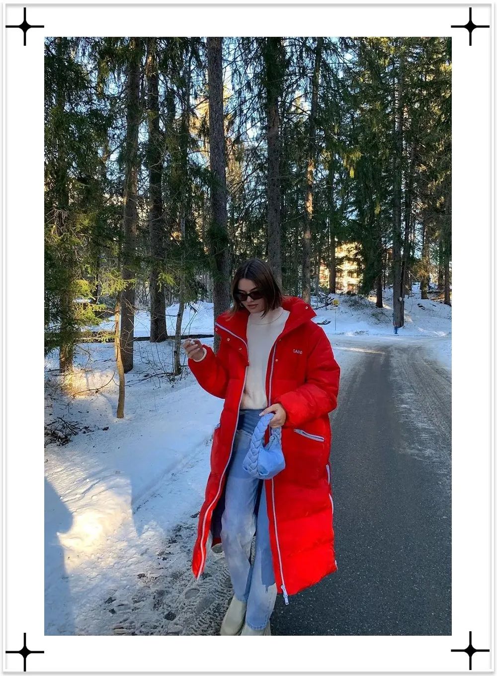 北方的姐妹可以按照这个思路,选择长款红色外套,狠狠张扬一把。