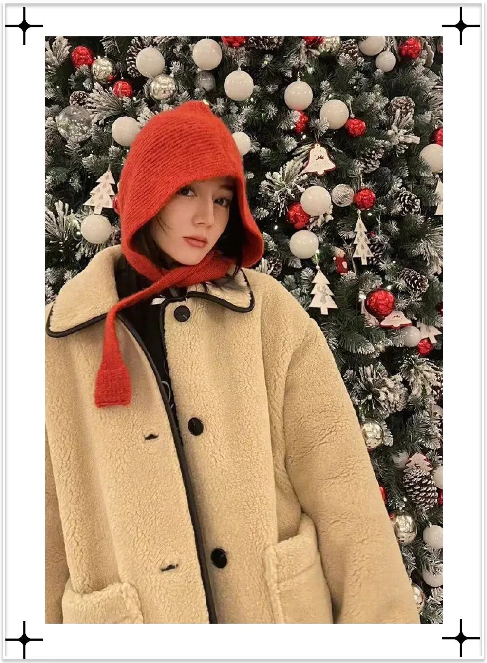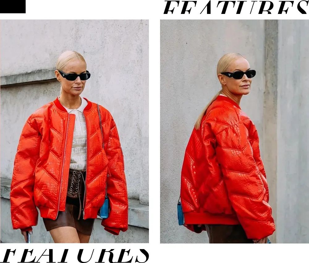 南方的小伙伴没有暖气的庇护,在室内穿着厚外套的几率比较高,可以把目光看向 Hailey 这种红色短外套。