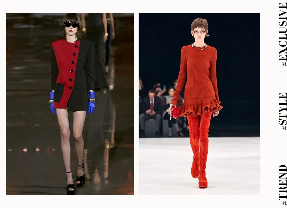 Saint Laurent、Givenchy将复古朋克和暗黑摇滚元素融入设计之中,将红色衬托得极具酷帅个性。