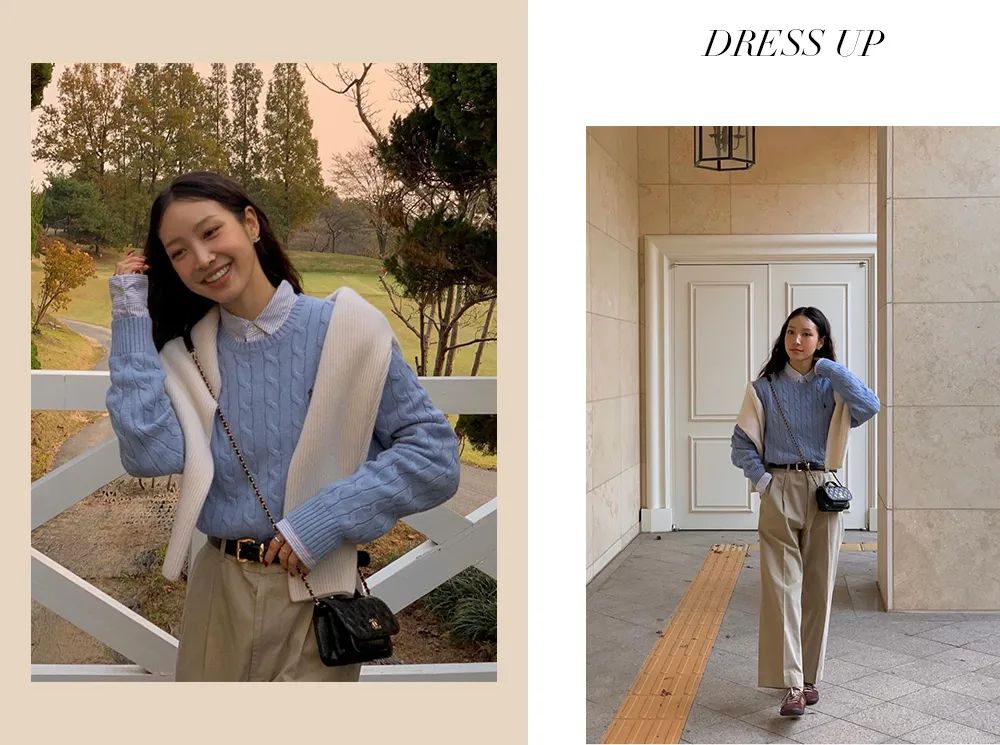 说到老钱风,不得不提到与之有着千丝万缕联系的Ivy学院风,也是近年来GenZ们都很爱的风格。它最早起源于上世纪50年代的常春藤校园,在浓厚的学院气息影响下,精英学子们常常穿着印着学院logo的V领毛衣和针织衫。这种风格渐渐就形成了大家传统印象里的,受过良好教育、有学识、有涵养的上流名媛公子哥形象,也是「老钱学院风」的由来。事到如今,这种学院风早已经不仅仅局限于校园,而是逐渐成为了每个人都可以驾驭的日常风格。西装外套、菱格纹马甲针织衫+衬衫进行叠穿,搭配上一条万能百褶短裙,整体look有种正统的学院气息,却在巧妙的颜色搭配下,让人有种耳目一新的都市丽人感。Miu Miu在传统Ivy学院风的基础上增添了一丝叛逆张扬,廓形更加宽大的羊毛大衣,搭配上包裹住小腿的堆堆袜和缎面材质的芭蕾舞鞋,打造出了一种时髦精致度up的学院风,甜辣美少女专属。它的灵魂就在于将不同颜色、图案的马甲与风衣、西装进行叠穿,参加正式场合可以选择较为修身的板型,想展示张扬的个性则可以选择更时髦一些的Oversized板型。曾风靡全球的热播美剧《绯闻女孩》,纽约上东区老钱女孩们的造型简直就是学院风女孩们的穿搭宝典。粗麻花套头针织衫也是老钱们出镜率极高的单品,来自瑞士的法学院在读博主Carla,经典款Ralph Lauren粗麻花套头针织+衬衫内搭的造型虽然简单,却在丝巾和发带点缀下散发着别具一格的气质,可盐可甜。韩国博主JinJu搭配同色系衬衫+卡其色阔腿裤的造型也很值得借鉴。换上同色系贴身针织高领内搭,与百褶裙进行搭配,青春活力的同时,洋溢着一丝复古气息。A字短裙、百褶裙、配上辣妹们都爱的白色堆堆袜轻松拿捏学院风。Bella Hadid搭配西装半裙也别有一番韵味,切记裙子的长度要超过膝盖才能更好营造出复古氛围,低调又有内涵~老钱文化里对户外运动十分看重,网球、高尔夫、马球应有尽有,因此,为运动而诞生的Polo衫必然成为了跨时代的经典单品。它最早为贵族打马球活动而诞生,既保留了衬衫的正式又增加了运动属性,不管是学术性场合,还是运动休闲场合通通可以应对。品牌们对材质、板型、款式的不断改良,渐渐被众多时尚icon列为私藏心头好,郑秀晶、金敏珠、宋妍霏、欧阳娜娜等国内外一线女星可别提有多爱穿了。并不是这样的,其实我想说的是,无论是他们的老钱精英风、老钱学院风,还是老钱户外运动风,都能感觉到他们对生活质量、生活方式、精神内涵和健康的极致追求,这才是普通人最该学习的点。看到这里,是不是能get到真正的“松弛感”到底是什么了~