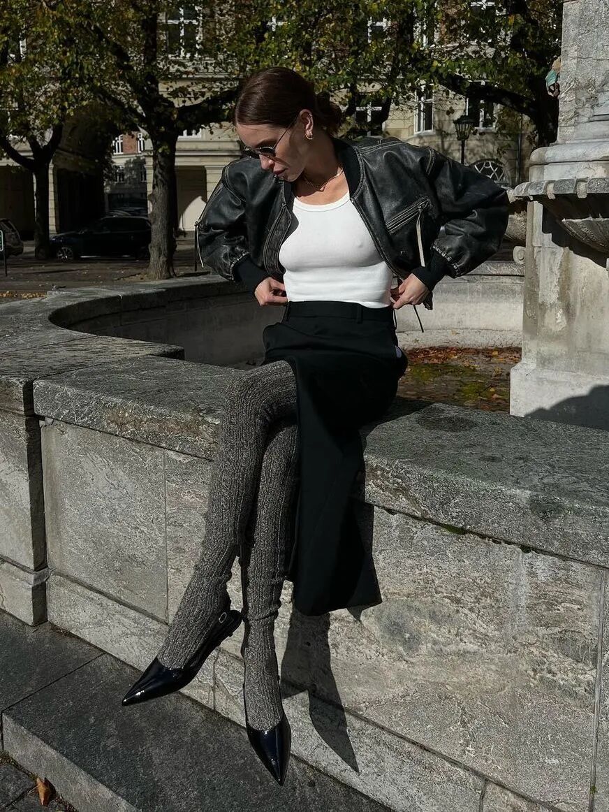 除了和夹克风格统一的裤装,皮夹克还很适合搭配今年很流行的全长半裙,裹身感的裙装和机车风格的夹克会冲撞出意想不到的效果。
