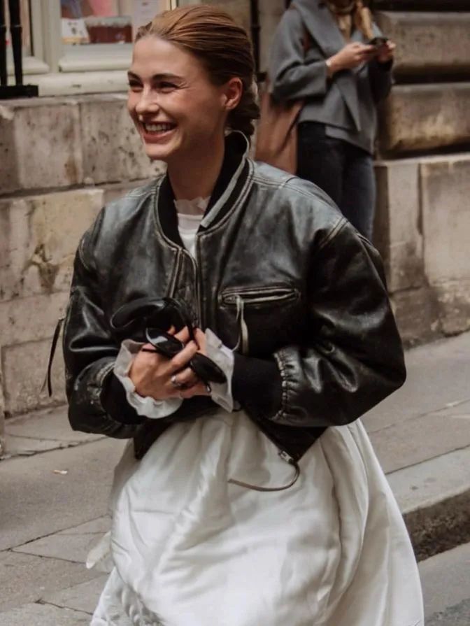 这股夹克的流行时尚ICON们也功不可没,Hailey Bieber的皮夹克街拍成为了无数女孩的模仿对象。重点单品的分量感让夹克可以成为一套穿搭的中心要素。