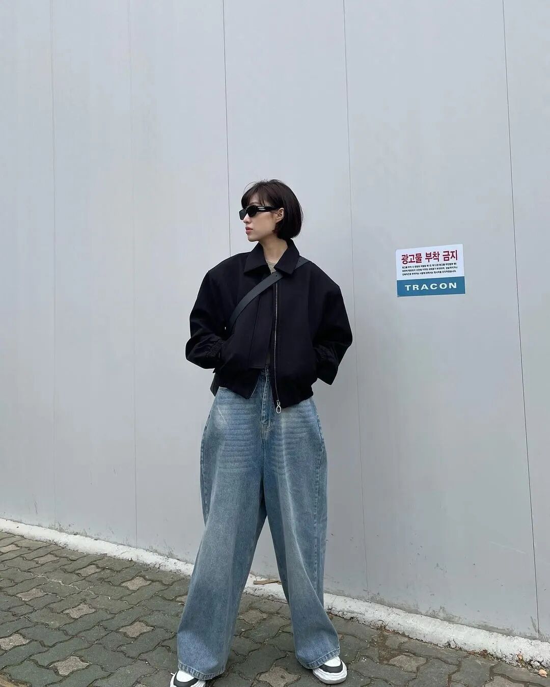 这种基础款单品也很好搭配,日杂的演绎就把老干部夹克的复古感放大,与学院风单品搭配,产生强烈的青春气息。