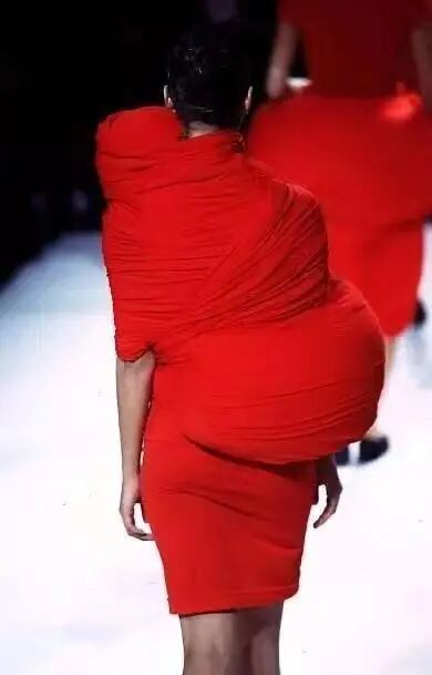 尤其是穿着者身上扭曲且臃肿的服装,让人不由得想起那位纵贯布尔乔亚艺术与时尚史的设计师——川久保玲。