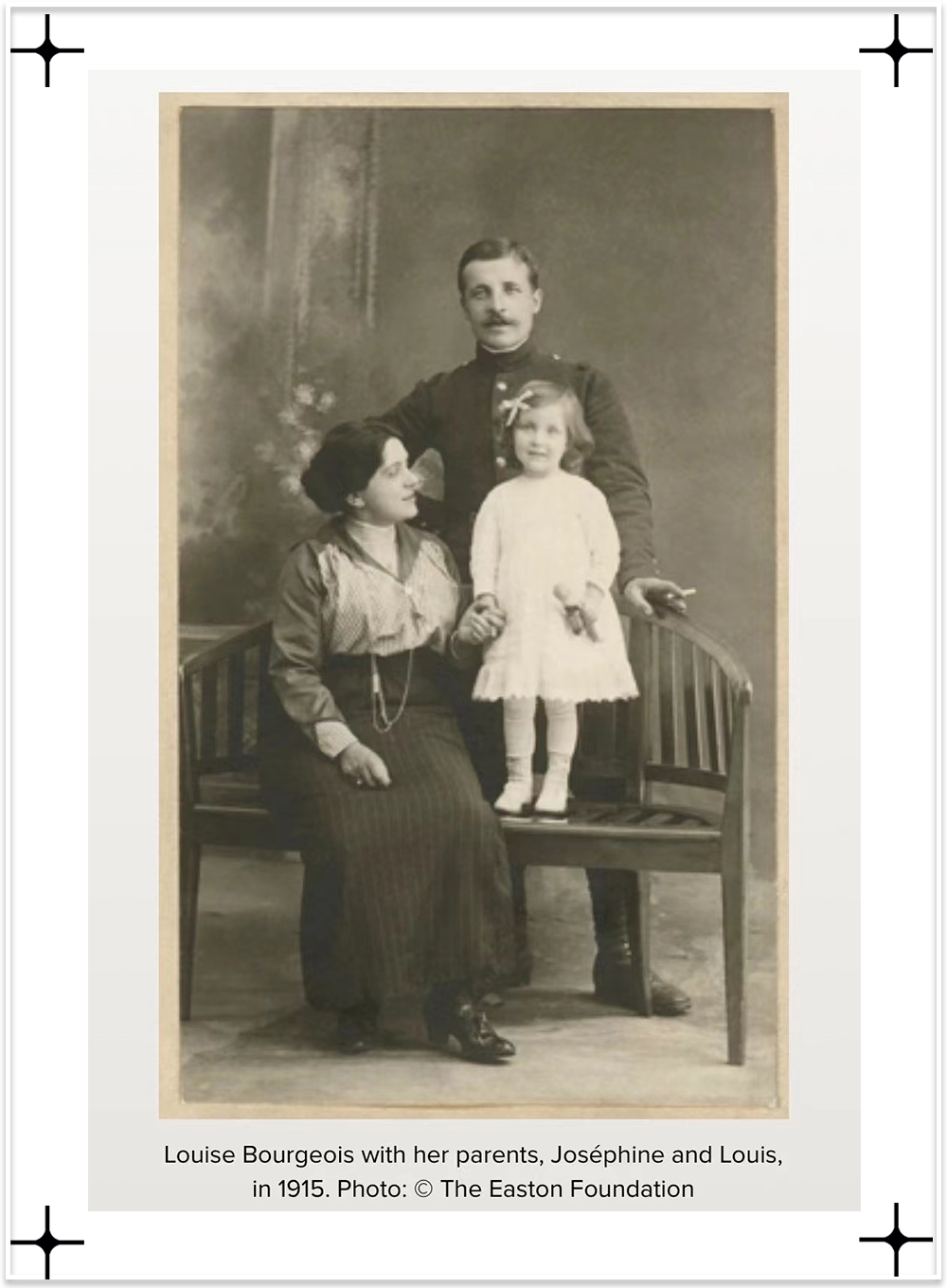 出生在巴黎的Bourgeois,从孩童时期就已经穿上了巴黎设计师的作品,以至于后来在《纽约时报》的采访中,她回忆起儿时父母关于她应该穿什么的争执,竟成了她最初的艺术灵感来源。