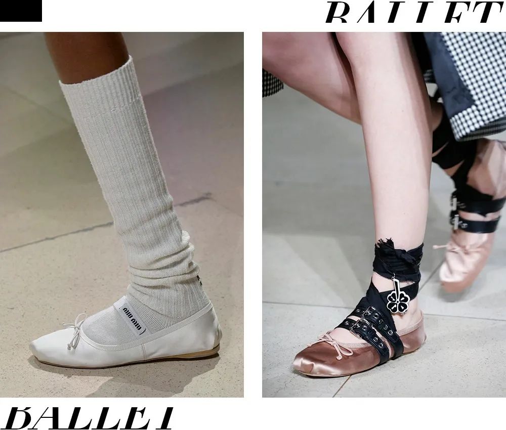 袜套显胖,那不如放弃它,搭配各色袜子也同样好看;平底鞋容易显得比例不好,那就穿上高腰裤模仿赫本的经典look;觉得芭蕾舞鞋太优雅,那就搭配上皮裤或机车夹克,刚好符合芭蕾舞者坚毅的性格。