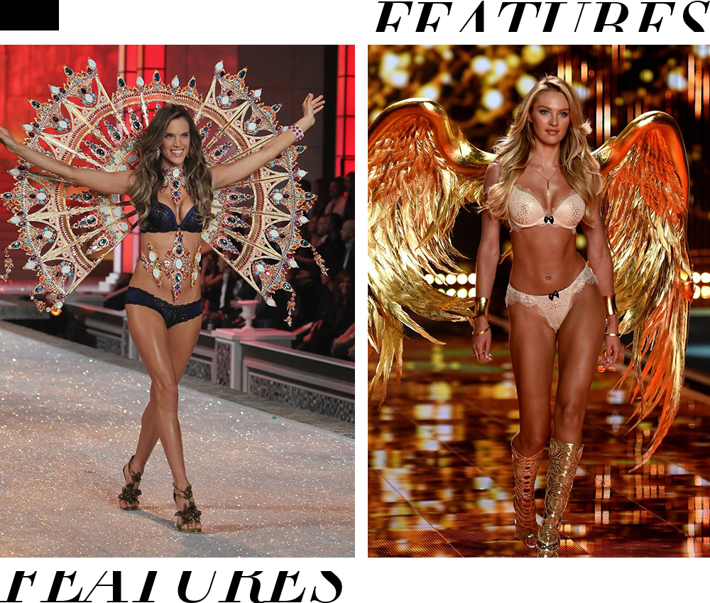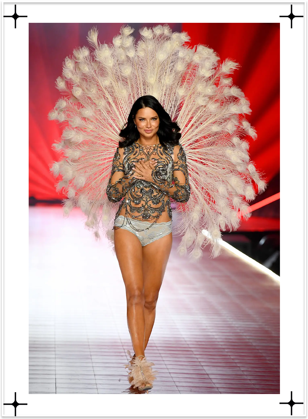 然而,随着多元倡导深入人心,维秘单一的性感路线逐渐跟不上时代的步伐了。多重因素下,大秀被取消,品牌迎来升级改造。如今,主动拥抱多元审美的维秘正在重新赢回人们的认可。从回归预告视频中就可以看出,今年不只有超模,舞蹈家、音乐家、作家、电影人、设计师、艺术家在内的女性都会成为维秘的座上宾。拉满期待值的同时,也点燃了人们的怀旧之情。毕竟,它能够成为万众瞩目的年度盛会,可不是没有原因的。豪华的超模阵容向来是维秘大秀的一大看点。最出圈的一幕或许是2003年,即使没有背上天使翅膀的Naomi Campbell,依旧靠着稳健的台步,将流苏甩出了翅膀般的弧度,被粉丝称为“教科书级别”的走秀。因为参与的超模众多,2005年的维秘大秀甚至被称为“诸神之战”,Gisele Bündchen、Naomi Campbell、Karolína Kurková、Heidi Klum、Tyra Banks、Raquel Zimmerman......几乎当时最顶级的超模都来了。也是这一年,天使Heidi Klum背着一对巨大的发光翅膀出现在T台上,并隔空对当时的丈夫Seal投送了一个甜蜜飞吻。这一幕开启了情侣在维秘大秀互动的先河。2006年的大秀同样出圈,尤其是Gisele Bündchen贡献的神级开场,缔造了维秘史上的一大经典瞬间。这个开场还发生了一件趣事。从镜头里看,Gisele忽略了表演嘉宾Justin Timberlake的互动,显得特别高冷。但仔细看,她从巨型LED屏后走出来不久就扭到了脚踝,这一下使她变得十分紧张。毕竟台下坐满了人,比起和嘉宾互动,确保自己业务不会出错是更要紧的事情。有着“大KK”之称的Karolína Kurková也是这个时期备受瞩目的天使。她在维秘分到的翅膀往往都是巨型的。虽然华丽,但仅从视觉上就能猜到这该有多重了。好在大KK的业务能力向来有口皆碑,翅膀在她身上如同“长”出来一样自然又优雅。或许这就是维秘喜欢将大型翅膀分给她的原因吧。再后来,Alessandra Ambrosio、Adriana Lima、Miranda Kerr、Candice Swanepoel等新一代天使逐渐接棒了维秘的超模神话,创造了其在00年代后期及10年代的辉煌。左Alessandra Ambrosio;右 Candice Swanepoel其中不能不提的是Adriana Lima。自从1999年第一次为维秘走秀以来,她在这里留下了整整20年的时光,与维秘一同成长的她是签约时间最长的天使。很多人在提到维秘时,脑海里蹦出的第一个名字就是Lima。2018年是Lima担任天使的最后一年。在这场重要的告别秀上,维秘专门为她开辟了一个回顾单元。以一支混剪视频,回顾了过去20年间她在维秘的无数经典时刻。当Lima最后一次出现在T台上时,台下的嘉宾们纷纷起立鼓掌。的确,人生能有几个20年呢?为一家公司奉献20年的几率能有多大呢?这种惺惺相惜的合作,很难让人不为之动容。“Fantasy Bra”在1996年首次推出,Claudia Schiffer则是第一个穿上它的超模。当时这款Bra的价值达到令人咋舌的100万美元,但它却是维秘史上最“便宜”的一款Fantasy Bra。2000年,Gisele Bundchen穿的Fantasy Bra价值达到史无前例的1500万美元,让它一度拿下吉尼斯世界纪录,成为有史以来最昂贵的内衣。看看那总计超过1300克拉的钻石和泰国红宝石就知道了。2005年,Gisele Bundchen再次被维秘选中,第二次穿上Fantasy Bra并为大秀开场。这款Bra同样价值不菲,达到了1250万美元。镶嵌有2900颗钻石、22颗红宝石,以及一颗重达101克拉的钻石。Lima第一次穿上Fantasy Bra是在2008年。这款被命名为黑钻奇迹的Bra由珠宝商Martin Katz设计,价值500 万美元。镶有3575颗黑钻、117颗一克拉钻石和34颗红宝石。与其说它是一件内衣,说它是一件珠宝或许更为合适。2011年的Fantasy Bra则花落当时人气极高的天使Miranda Kerr。为了贴合海洋主题,这件Bra嵌入了3400多颗珍珠、黄水晶和海蓝宝石。将Kerr衬托得如同海洋公主一般,梦幻极了。另一位人气极高的天使Candice Swanepoel则在2013年穿上了自己的第一件Fantasy Bra。跟此前不同的是,这件Bra加入了黄金,以及一颗巨大的52克拉梨形红宝石。因为Candice的精彩演绎,也因为以皇室为设计灵感的它更贴合传统审美,让这款Bra获得了如潮好评,值得一提的还有2014年。这是维秘首次推出两件Fantasy Bra,由当家天使Alessandra Ambrosio和Adriana Lima一同演绎。两人身上均佩戴了超过16000颗珠宝,包括蓝宝石、红宝石,当然还有钻石,创造了当年大秀的高光时刻。明星表演也是维秘大秀备受瞩目的原因之一。Taylor Swift、Lady Gaga、Rihanna、Justin Bieber、Arianna Grande、Bruno Mars、The Weekend、Katy Perry、Nicki Minaj.......几乎每一个大热歌手都在维秘表演过。Rihanna在沉迷美妆前,曾在维秘大秀上贡献了一场火力全开的表演——不仅不躲《Diamond》的高音,还即兴走了一段台步。这段表演后来一直被歌迷们拿出来反复观看。毕竟除了今年的超级碗,是真的很久没看过Rihanna的现场了。Taylor Swift在维秘的表演一度被指夺走了超模的光环。当身高180cm的她站在T台上,完全就是一副超模的样子。她跟Karlie Kloss的互动更是成为了当时的一段佳话,粉丝们甚至在社交平台上创造出#Kaylor这一话题。不过,维秘现场也有可能是尴尬的。2016年。在大秀举办当月分手的The Weeknd和Bella Hadid在T台上意外重逢。当时这一画面被无数网友转载,有人赞美Bella的表现很自信,也有人直呼这实在太为难人了。Arianna Grande则在维秘大秀上饰演了一回喜剧人。由于表演太投入,以至于她撞上了天使Elsa Hosk的翅膀。因为表演是预先录制的,所以这一幕并没有在正片里放出来,但还是流出了