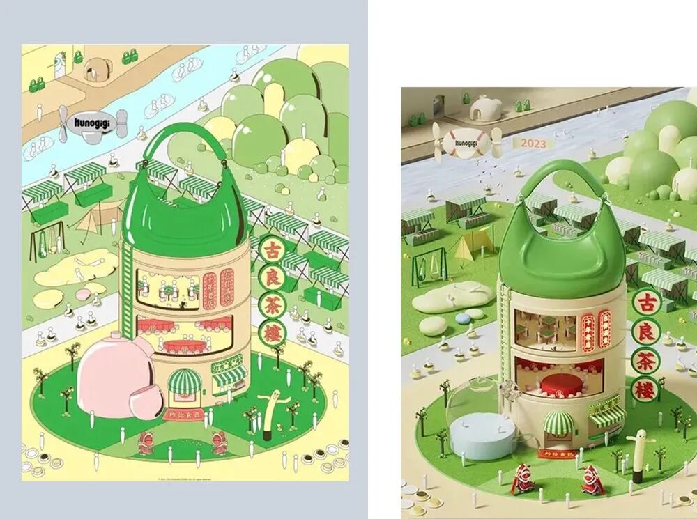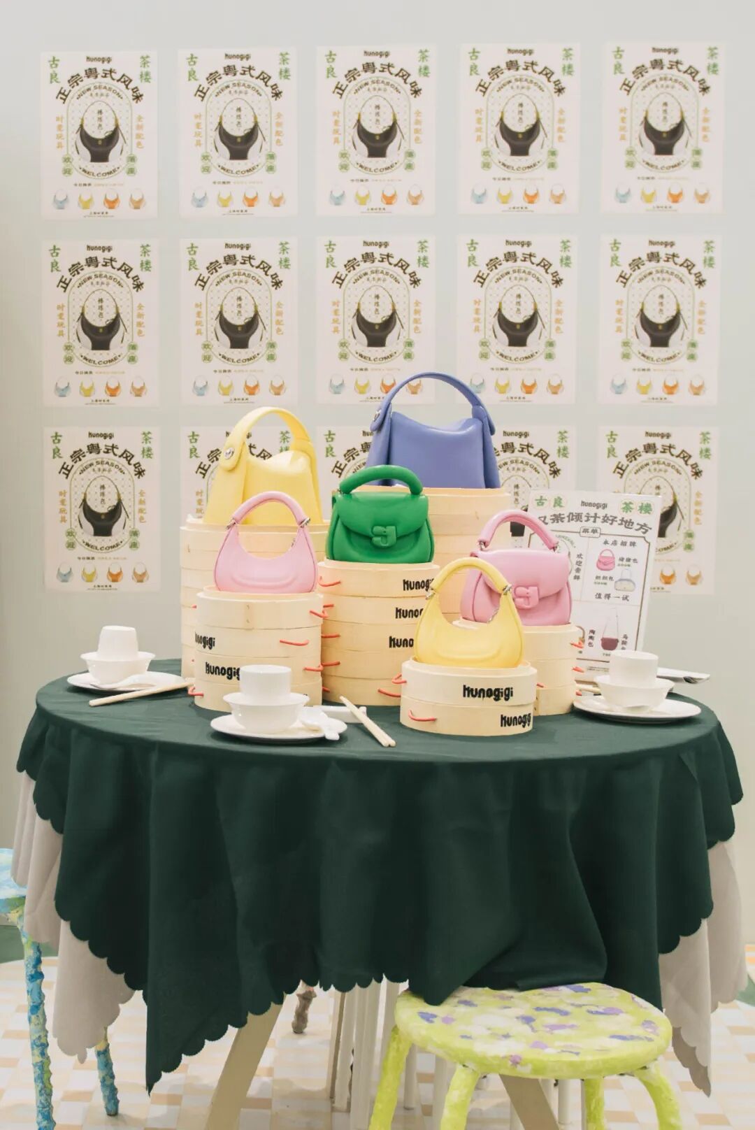 “做包嘛,最要紧的是好玩啦!”参展者在沉浸式体验茶楼文化之余,还能在展览现场各处,找寻到古良吉吉各式各样别致的包包。一只只可爱的mini bag放在蒸笼里,一屉一屉展出,精致如点心,忍不住喊上亲朋好友一起来食“包”饮茶!