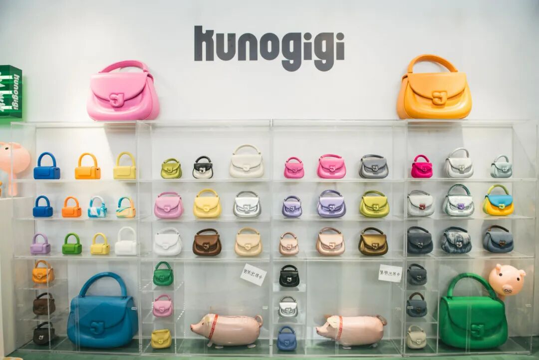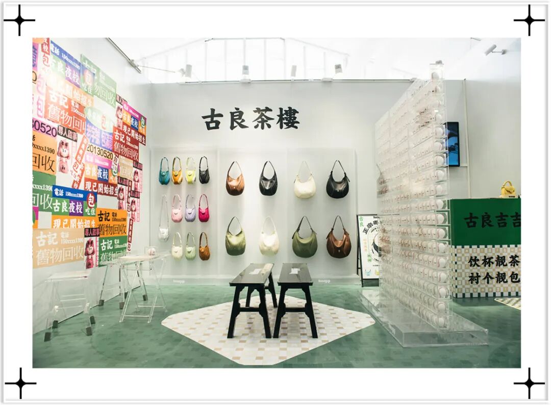 定制棒球阵列屏风、彩色亚克力八仙凳、藏着品牌故事彩蛋的牛皮癣广告墙……展位的每一处装饰,都高度还原了经典茶楼的复古装修。坐着喝喝茶、聊聊天,年轻人也能在茶楼里社交。在另一边的“包厢”中,颜色各异、造型独特的包包以盲盒手办的形式陈列在亚克力柜中,就问哪个爱包女孩能不为这满墙的时髦“玩具”心动!