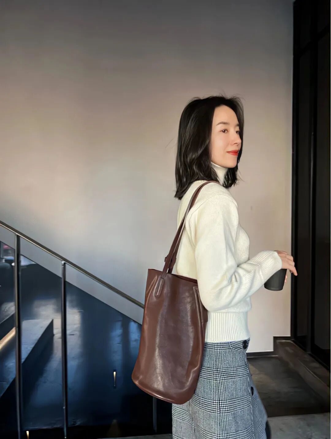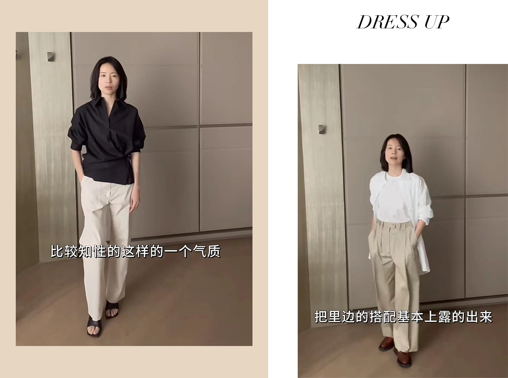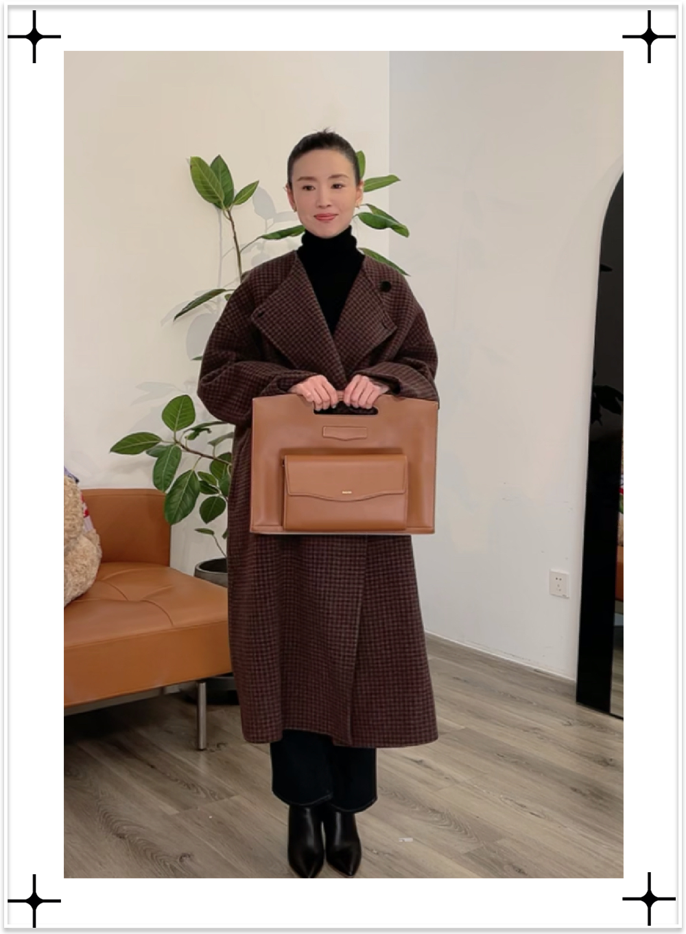 在谈到焦糖色的大衣时,她会为你构筑一个手捧着热奶茶在秋冬踩着落叶的穿衣场景。而典雅温柔的卡其色则是被她形容成像冬天温暖又明净的阳光,这些描述渗透人心,为大家提供着向往美好的情绪价值。