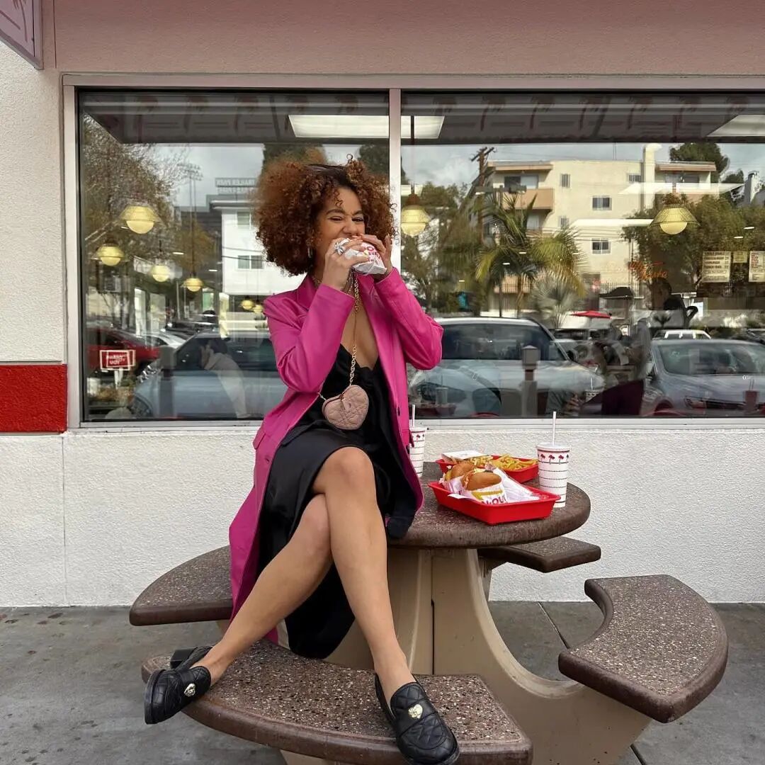 作为常年出现在镜头中的博主,Léna不会刻意打造人设,她很坦诚地告诉观众,镜头前的光鲜只占据生活中的5%,剩下的95%都跟普通女孩没什么差别。华丽的礼服是借来的,活动结束后就要变成“灰姑娘”;衣帽间的整齐只是为了拍视频;放在展示架上的包是因为太贵了,不亮出来有点亏;食物不只有沙拉,偶尔放肆吃汉堡炸鸡也可以。