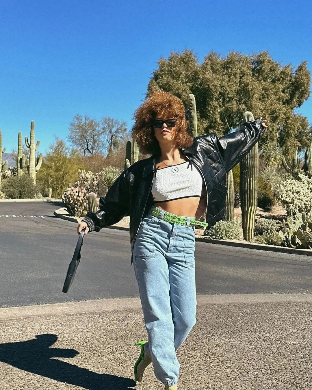 所以,在她的社交平台里,可以看到简单轻松的T恤牛仔裤,可以看到大胆热辣的吊带裙,也可以看到剪裁利落的廓形外套。
