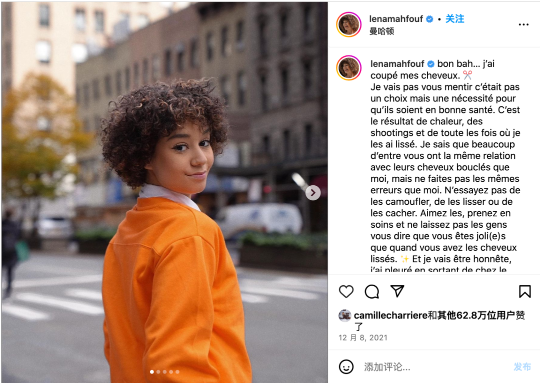 从每天都要造型的长直发,到原生态的短卷发,Léna刚开始是拒绝的,毕竟从小甜甜布兰妮时代走过来的她,卷发一直是她自卑的源头,但在她坦言剪发是因为经常拉直导致的发质受损而不得不剪掉后,网暴依然没有停止,并发散到她的身材以及私生活。